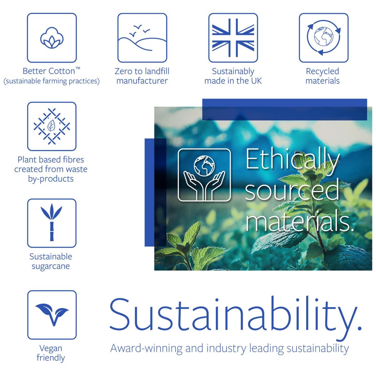 Comfort, Health and Sustainability. Stay cool, even when you sleep. The Jay-Be Bio Cool Mattress represents a breakthrough in comfort and thermo-responsive technology. Featuring plant-based fibres, the Bio Cool fabric surface is made from High-Density sugarcane yarn, which efficiently conducts excess heat away from your body, ensuring comfort and an ambient night's sleep. Highly breathable fillings, combined with the Mint-enriched premium comfort layer, supports easy air flow, efficient moisture-wicking and provide a natural cooling sensation. Just beneath the sleep surface is a mint enriched premium plant-enriched comfort layer. As well as having natural anti-bacterial properties the mint extract is independently tested and proven to provide a natural cooling feeling. 100% foam free and free from harmful chemicals, this mattress contains award winning Advance e-Fibre and breathable e-Fibre layers. A foundation of Deep e-Pocket springs, plus the added benefit of micro pocket springs, giving real huggable support. Vegan Friendly. Jay-Be understands the importance of healthy sleep and its impact on overall well-being. They ensure all materials used in their mattresses promote a comfortable and healthy sleep. Additionally, Jay-Be mattresses only use ethically sourced materials and are 100% recyclable at end of life, allowing you to help in our fight against climate change. Part of the Bio Cool collection. Medium feel. with 1748 springs. Knit cover with quilted finish. No roll together. Anti allergy. Mattress size W135, L190, D23cm. No-turn mattress. Easy care no turn mattress. Made in the UK. Rolled mattress. General information: Manufacturer's 10 year guarantee.