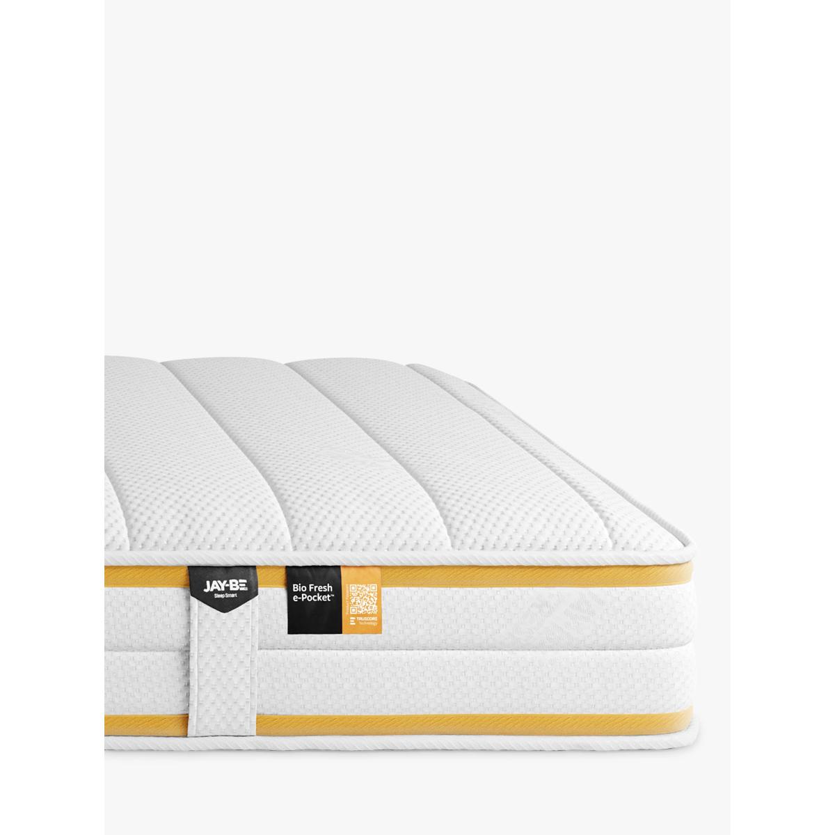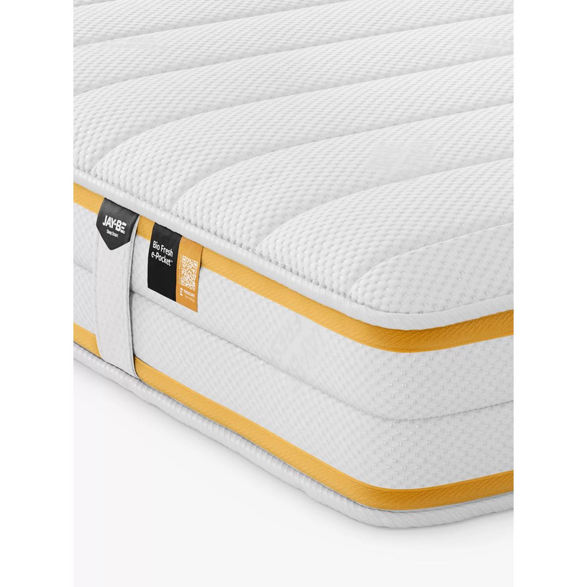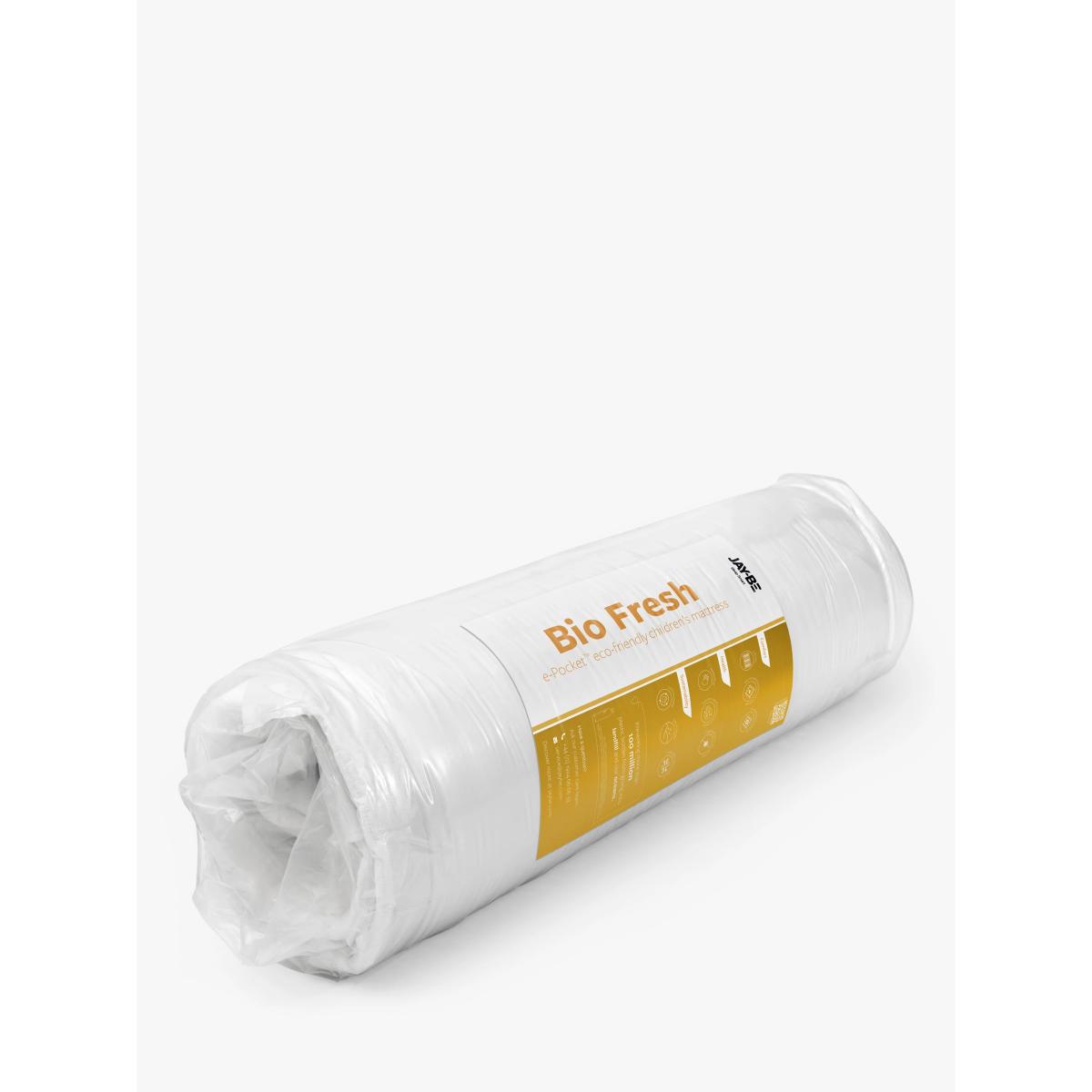 The Jay-Be Bio Fresh children's mattress harnesses the power of plants with advanced, sustainable fibre technologies for a totally revitalising sleep. Featuring smart plant-based fibres and natural herbal extracts, it fights odours and repels dust mites, so you stay fresh and comfy all night long. Key Features: Bio Fresh fabric, enriched with sustainable, natural herbal extracts (linseed and margosa oil) Eco award-winning Advance e-Fibre for extra luxury and comfort Highly breathable, mint-infused filling to help reduce odours and maintain freshness Breathable Rebound e-Fibre comfort layer Deep e-Pocket for responsive contour support High desnisty e-Fibre base layer Cushioned border for increased durability Handles for ease of movement Manufacturer's 5 year guarantee Made in the UK to British and European safety standards