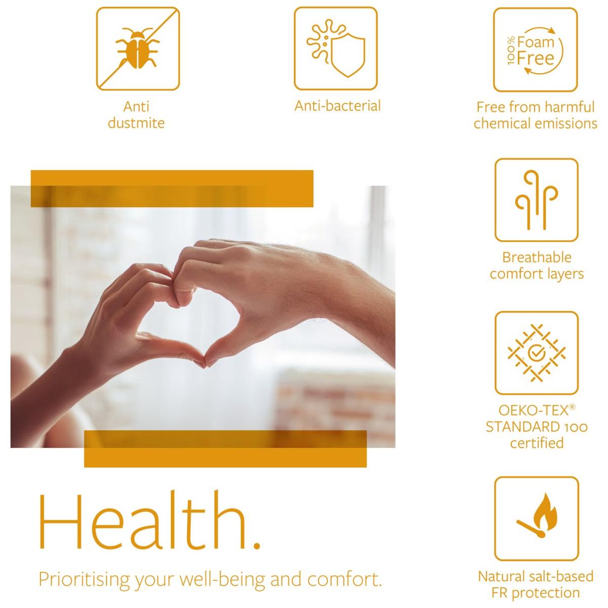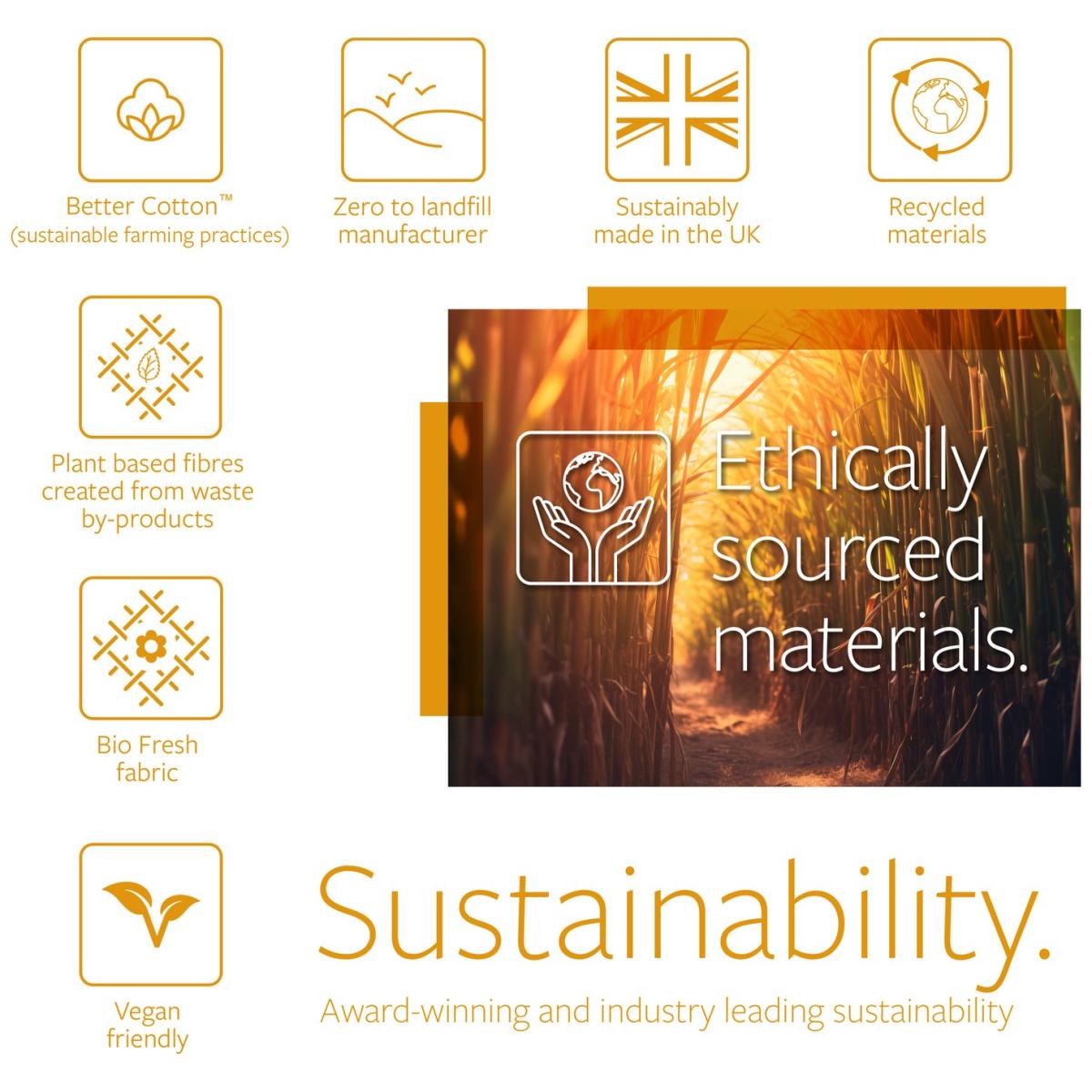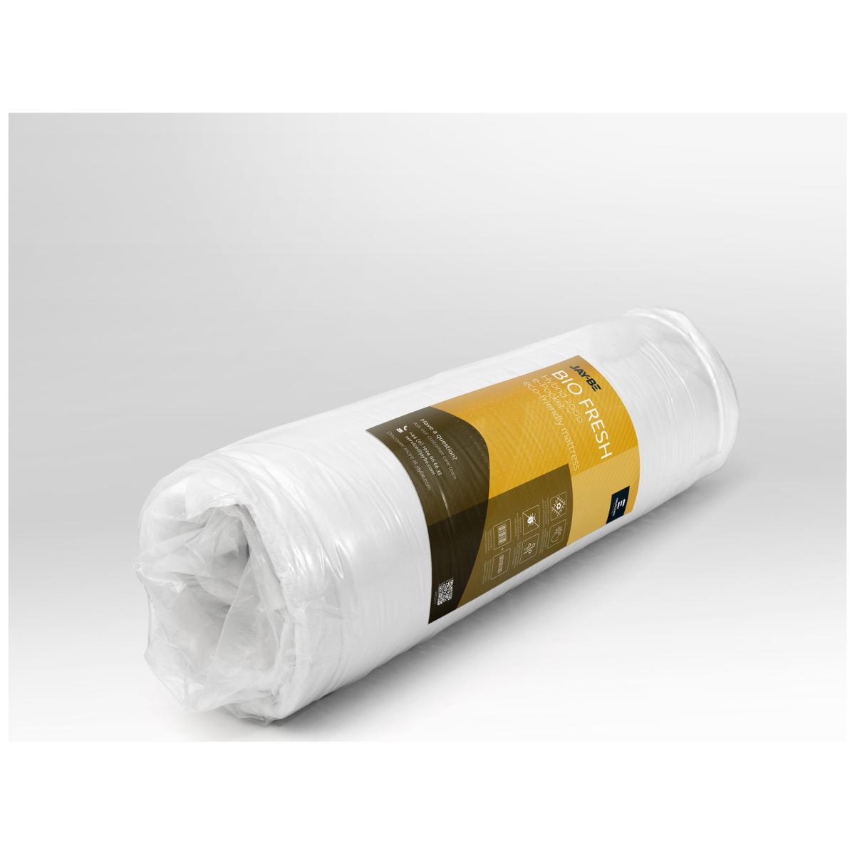 Comfort, Health and Sustainability. Fresh and healthy sleep, thanks to advance fibre technologies, the Jay-Be Bio Fresh mattress harnesses the refreshing abilities of natural plant-based materials and herbal extracts. Linseed oil and margosa oil are infused within the mattress fabric to naturally fight odours, caused by bacteria, and furthermore repels dust mites. Multiple breathable comfort layers complement the mattress to provide a completely fresh, healthy, and uplifting sleeping environment and experience. Mint enriched premium comfort layer delivers freshness. Extracted from natural peppermint leaf, the mint enriched fibres provide a natural moisturising feeling and are extremely breathable, keeping your mattress well-ventilated and fresh. 100% foam free and free from harmful chemicals, this mattress contains award winning Advance e-Fibre and has a foundation of Deep e-Pocket springs, plus the added benefit of micro pocket springs, giving real huggable support. Vegan Friendly. Jay-Be understands the importance of healthy sleep and its impact on overall well-being. They ensure all materials used in their mattresses promote a comfortable and healthy sleep. Additionally, Jay-Be mattresses only use ethically sourced materials and are 100% recyclable at end of life, allowing you to help in our fight against climate change. Part of the Bio Fresh collection. Medium feel. with 1139 springs. Knit cover with quilted finish. No roll together. Anti allergy. Mattress size W90, L190, D23cm. No-turn mattress. Easy care no turn mattress. Made in the UK. Rolled mattress. General information: Manufacturer's 10 year guarantee.