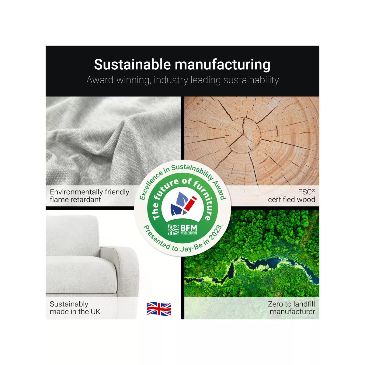 Product Information Introducing Jay-Be premium-quality sofa beds, thoughtfully designed and engineered to deliver ultimate performance. The mattresses are 100% recyclable, so you can choose from a range of carefully selected GreenF. R� fabric options, to marry style with unparalleled comfort all night. The Deco stands out as an undeniably eye-catching design, discreetly concealing the premium fold-out bed mechanism, complemented with a sumptuously deep sprung mattress, promising unparalleled sleep comfort. With an array of thoughtfully chosen fabrics, the Deco can be tailored to elevate and enrich your unique living space. In a matter of seconds, effortlessly transform your living space into a beautiful bedroom while keeping the seat and back cushions in place for complete convenience. Handcrafted in the UK, this sofa embodies aharmonious blend of luxury and sumptuous comfort. Every material chosen for the creation of this exceptional sofa bed has been thoughtfully selected to ensure long-term durability, as well as an unparalleled level of comfort. The premium fabrics and sumptuous fibre-wrapped seat cushions create a lavish sofa, while the luxurious wool, breathable comfort layers, and the deep e-Spring core within the mattress make for a superior bed, allowing you to embrace comfort in every moment. Try before you buyWe're confident in our furniture's quality, but it's always a good idea to check that it's a good personal fit for you. Measuring Up for Furniture Guide Sofas, Sofa Beds & Chairs Buying Guide Upholstery Care Guide