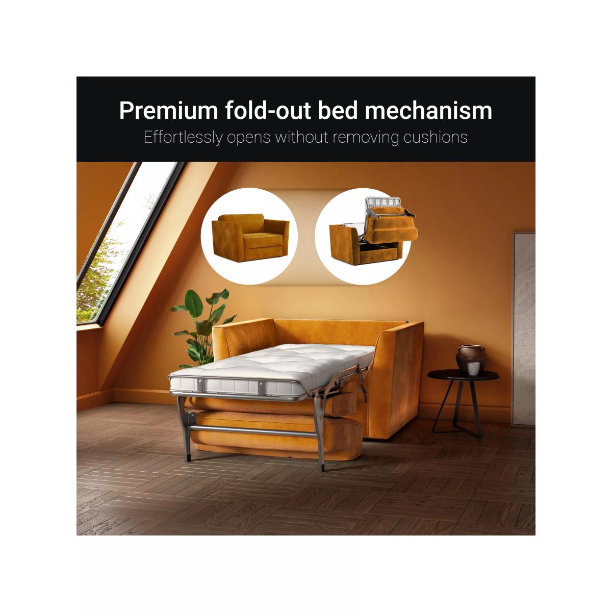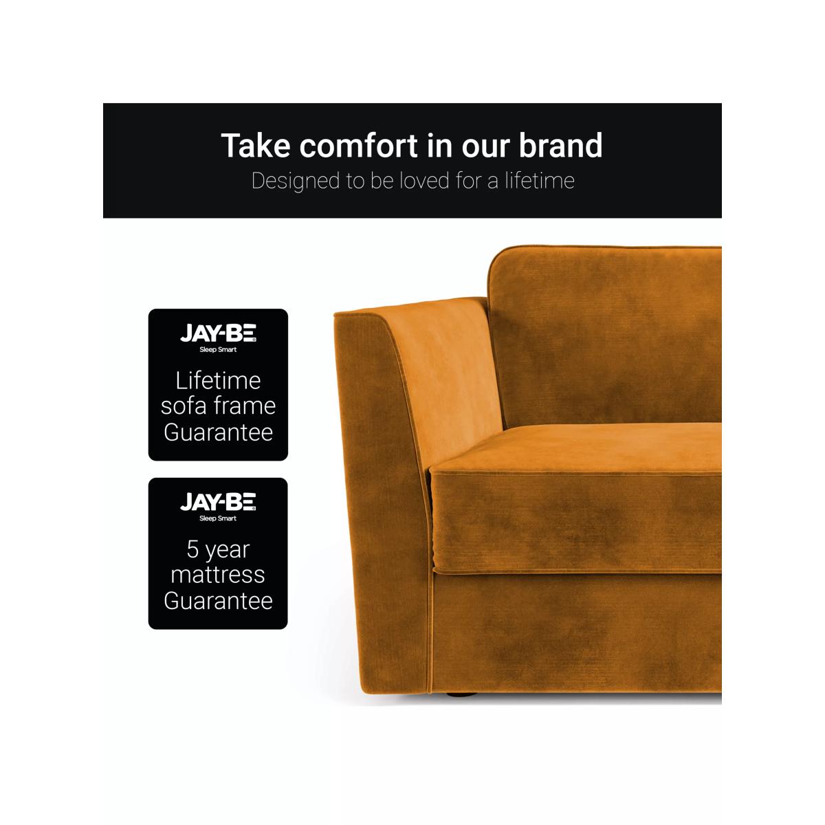 Product Information Introducing Jay-Be premium-quality sofa beds, thoughtfully designed and engineered to deliver ultimate performances. The mattresses are 100% recyclable, so you can choose from a range of carefully selected GreenF. R� fabric options, to marry style with unparalleled comfort all night. The Elegance sofa bed epitomises contemporary sophistication with versatile functionality. Its high-angled arms exude modern elegance, while thoughtfully chosen fabric options enable a personalised style. Concealing a premium fold-out mechanism, the Elegance seamlessly transitions from a modern sofa to a luxurious bed, ensuring a truly opulent night�s sleep. In a matter of seconds, effortlessly transform your living space into a beautiful bedroom while keeping the seat and back cushions in place for complete convenience. Handcrafted in the UK, this sofa embodies aharmonious blend of luxury and sumptuous comfort. Every material chosen for the creation of this exceptional sofa bed has been thoughtfully selected to ensure long-term durability, as well as an unparalleled level of comfort. The premium fabrics and sumptuous fibre-wrapped seat cushions create a lavish sofa, while the luxurious wool, breathable comfort layers, and the deep e-Spring core within the mattress make for a superior bed, allowing you to embrace comfort in every moment. Try before you buyWe're confident in our furniture's quality, but it's always a good idea to check that it's a good personal fit for you. Measuring Up for Furniture Guide Sofas, Sofa Beds & Chairs Buying Guide Upholstery Care Guide