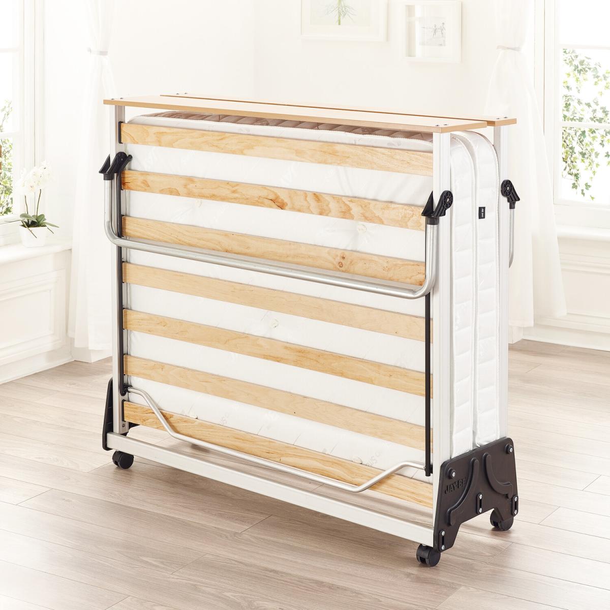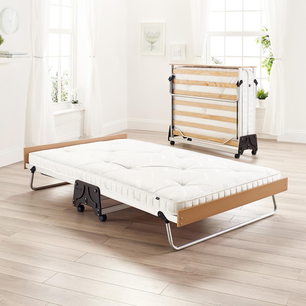 The J-Bed from Jay-Be brings together innovative technologies to create one of the most luxurious folding guest beds imaginable with an Anti-allergy Micro e-Pocket mattress. Treated with Purotex, a 100% natural probiotic technology which absorbs moisture and reduces the presence of dust-mite allergens, it helps to reduce the potential trigger of allergic reactions. Resting on a sprung slatted base, hundreds of individual micro e-Pocket springs work individually with the Jay-Be exclusive Rebound e-Fibre comfort layer to adapt to the contours of your body for a quality night' sleep. Created without compromise, the J-Bed features a lightweight anodised aluminium frame which sits on premium 360 castors for easy manoeuvrability. Precision injection moulded components compliment the J-Beds stylish appearance and the exclusive J-Lok folding mechanism enables effortless opening and closing of the bed, one side at a time. The oak effect headboard secures your pillow with a foot end to help keep the mattress in place. The ultra-comfortable Rebound e-Fibre support layer is created from recycled plastic materials and is 100% recyclable again after use. All Jay-Be Folding Beds achieve British, European and Internationally recognised safety standards and come with a free lifetime frame guarantee for your complete quality assurance.