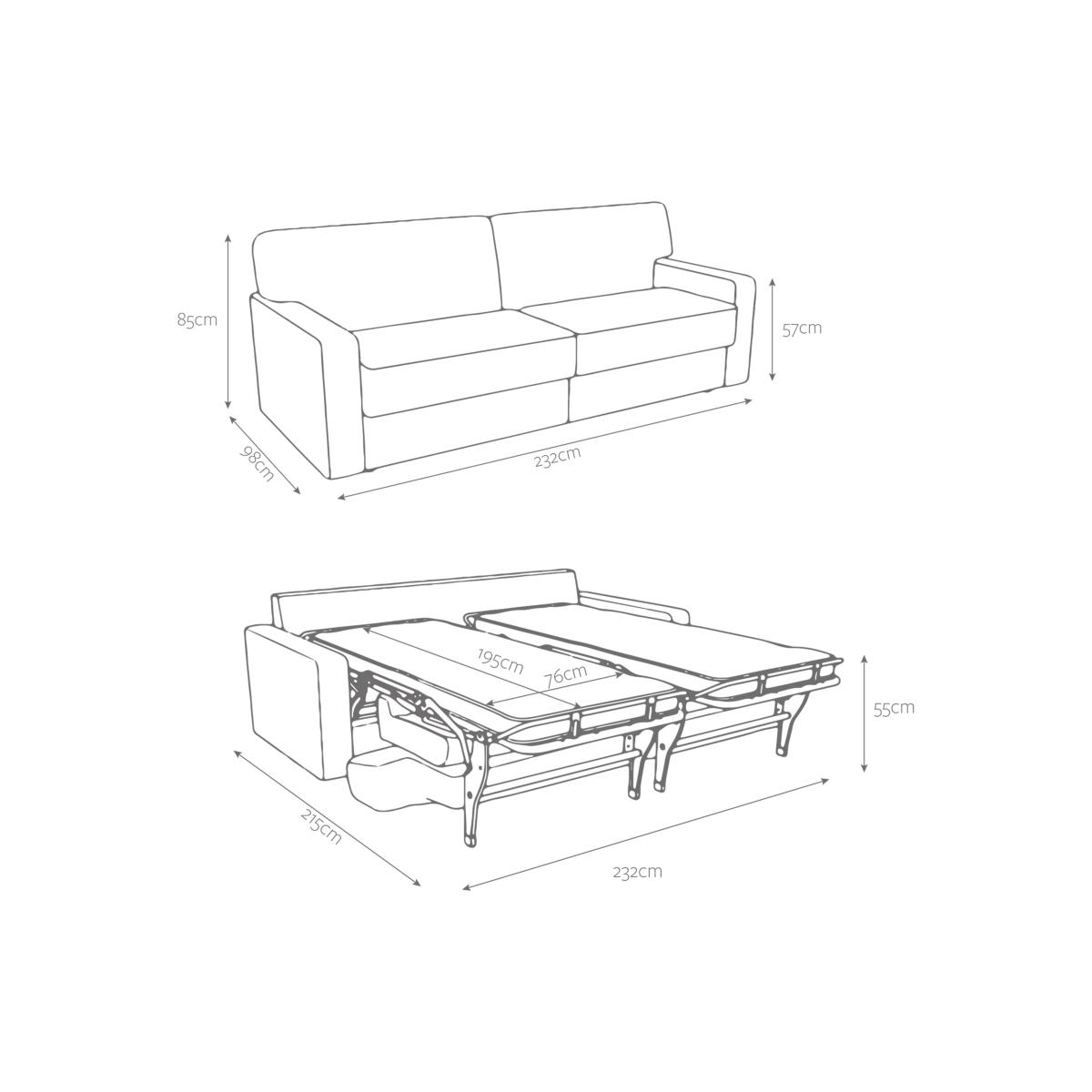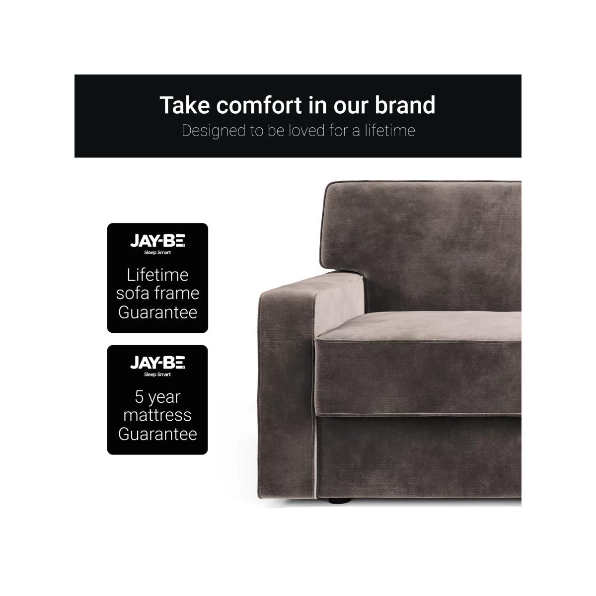 Product Information Introducing Jay-Be premium-quality sofa beds, thoughtfully designed, and engineered to deliver ultimate performance. The mattresses are 100% recyclable, so you can choose from a range of carefully selected GreenF. R� fabric options, to marry style with unparalleled comfort all night. A sophisticated design that will enhance any living space, presenting a symbol of understated luxury, the Linea sofa bed embodies versatility by harmoniously fusing style with functionality. Available in a range of thoughtfully selected fabric options, you can personalise the Linea to create the ultimate statement in your living space. Effortlessly transitioning from a refined sofa to a full-sized bed in a matter of moments, you are ready to offer your guests the most luxurious night's sleep. In a matter of seconds, effortlessly transform your living space into a beautiful bedroom while keeping the seat and back cushions in place for complete convenience. Handcrafted in the UK, this sofa embodies aharmonious blend of luxury and sumptuous comfort. Every material chosen for the creation of this exceptional sofa bed has been thoughtfully selected to ensure long-term durability, as well as an unparalleled level of comfort. The premium fabrics and sumptuous fibre-wrapped seat cushions create a lavish sofa, while the luxurious wool, breathable comfort layers, and the deep e-Spring core within the mattress make for a superior bed, allowing you to embrace comfort in every moment. Try before you buyWe're confident in our furniture's quality, but it's always a good idea to check that it's a good personal fit for you. Measuring Up for Furniture Guide Sofas, Sofa Beds & Chairs Buying Guide Upholstery Care Guide