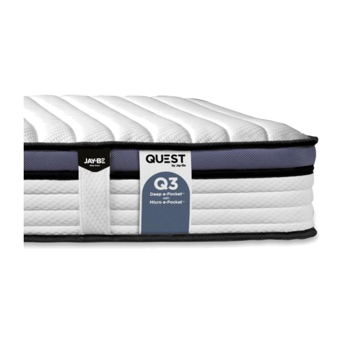 The Jay-Be Q3 Epic Comfort Mattress has the additional benefit of micro e-Pocket® springs on top of its deep e-Pocket core allowing the mattress to respond to even the gentlest of movements giving continuous huggable support and comfort throughout the night. Dimensions: 190cm x 90cm Mattress Depth: 19cm Deep e-Pocket™ Core for responsive contour support. Additional Micro e-Pocket™ layer for continuous huggable support. With an Advanced 3D Spacer for extreme breathability Featuring eco award-winning Advance e-Fibre 100% foam free, free from harmful chemical emissions. Breathable comfort layers to help regulate moisture. Open cell structure for temperature regulation. Naturally fire resistant so no nasty chemicals Soft knitted fabric surface which is kind to the skin Hypoallergenic materials reduce the risk of allergic reactions. Easy care non flip mattress. Sustainable eco-friendly design, featuring Eco award-winning Advance e-Fibre. Vacuum packed and rolled so it is as fresh as the day it was made. Helping to protect wildlife. Zero to landfill - To ensure your Jay-Be mattress never goes into landfill, Jay-Be has designed all their mattresses with end of life in mind. Manufacturer's 5 year guarantee. Made in the UK to British and European safety standards.