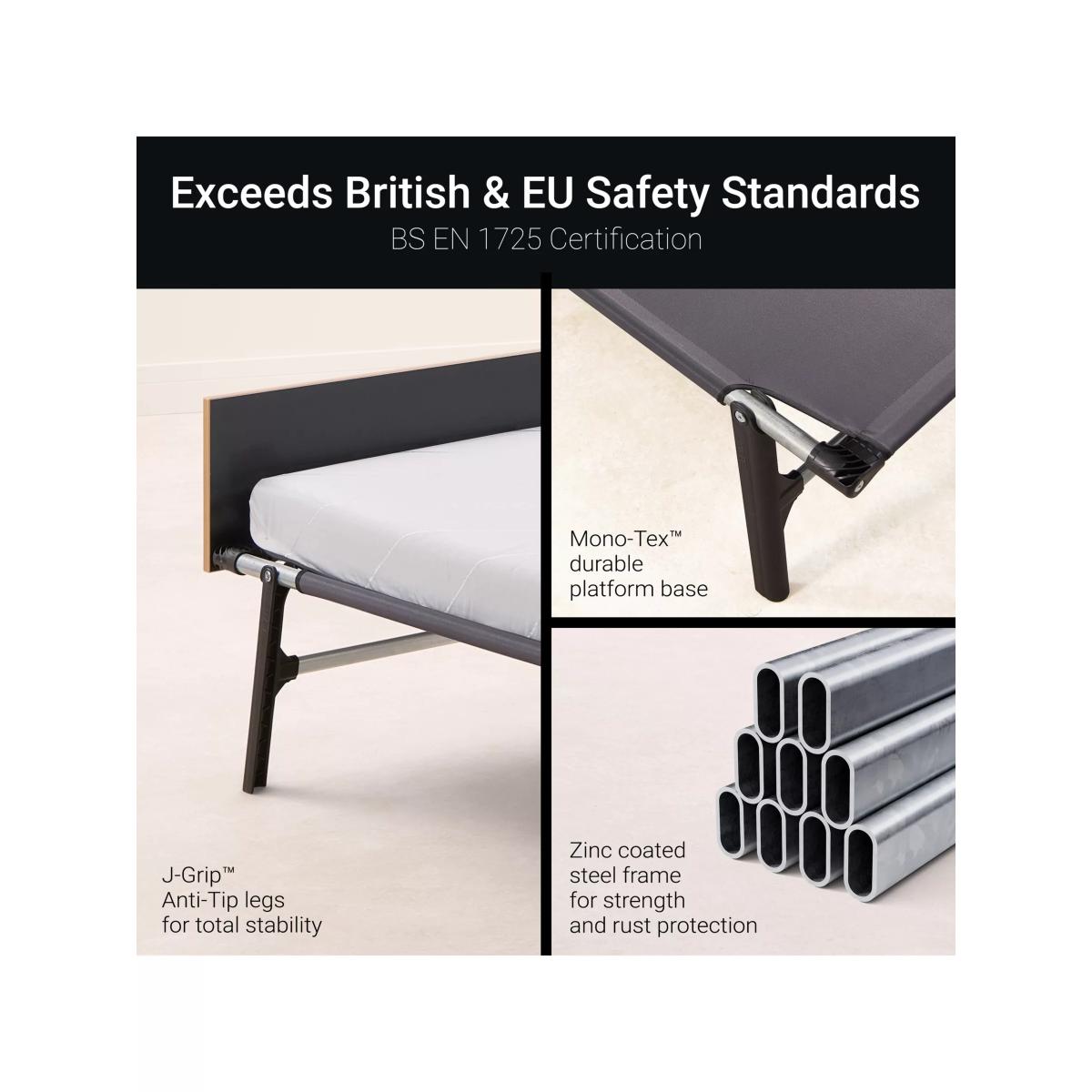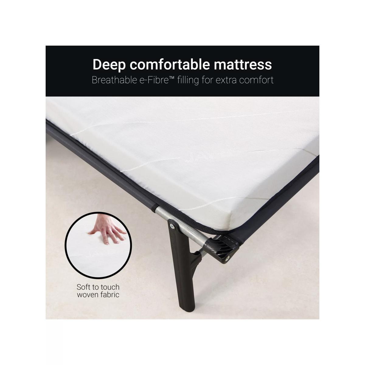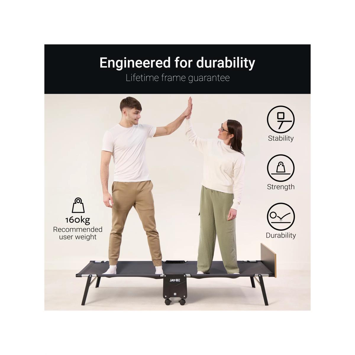 The Jay-BE® Rollaway RE80 offers comfort and space-saving convenience within a modern folding bed design. The 360-degree castors ensure easy mobility and J-Grip legs offer maximum stability. The Mono-Tex platform base, paired with the breathable e-Fibre mattress, delivers a supportive sleep foundation for long-lasting comfort. Worth Knowing All Jay-BE® folding beds achieve British, European and Internationally recognised safety standards. Want to see it first? You may want to see and get a feel for the furniture in one of our shops before ordering. We'll be able to tell you where the range you'd like to view is on display.
