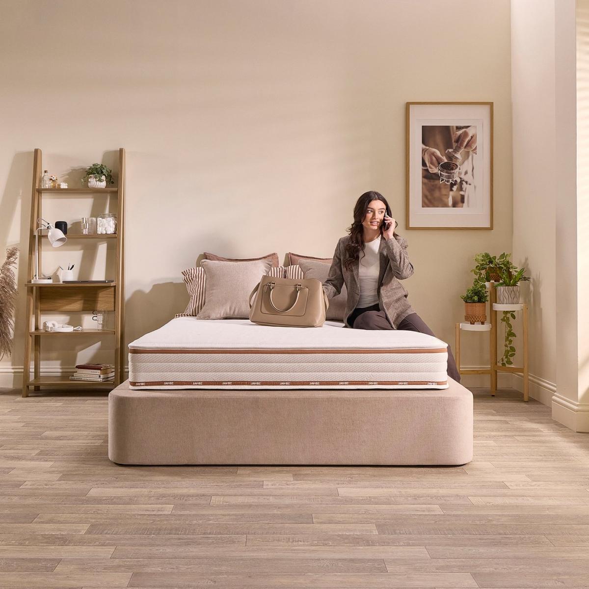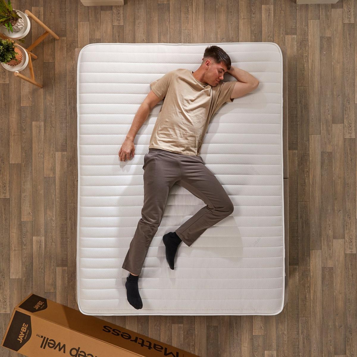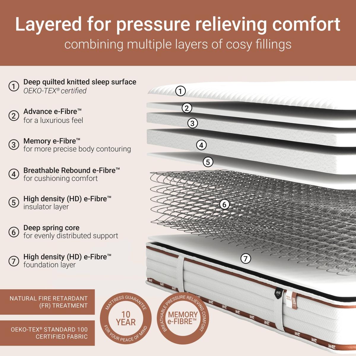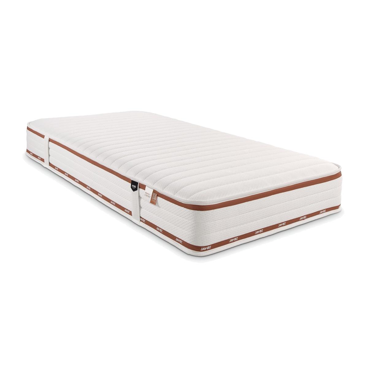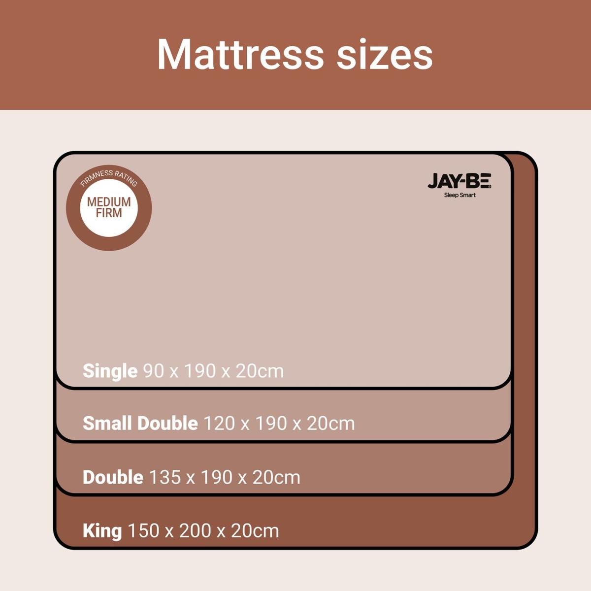 Pressure relief meets breathable comfort. Love the feel of a sprung mattress but want extra pressure relief, the Jay-Be Ryze Memory e-Fibre mattress combines both, plus added breathability for enhanced freshness. Created to mirror the pressure relieving properties of memory foam, Jay-Be's innovative Memory e-Fibre] gently adapts to body shape for personalised comfort. An open-cell vertical fibre structure allows air to flow more freely than conventional memory foam, helping to support a drier, more temperature-regulated sleep environment. Every feature of the Ryze Memory mattress has been carefully considered with comfort, well-being and sustainability in mind. It is made in Jay-Be's UK factory, which is powered by 100% certified renewable electricity and operates a zero-to-landfill policy. For added convenience, the mattress is vacuum packed and rolled, and comes with a ten-year manufacturer's guarantee, offering long lasting peace of mind. Part of the Ryze collection. Medium firm feel. Open coil mattress with 325 springs. Knit cover with micro quilt finish. Mattress size W120, L190, D20cm. Mattress Weight 16.8kg. No-turn mattress. Rotate mattress regularly. Made in the UK. Rolled mattress. Package Dimensions: Package 1 dimensions: H129, W32, D32cm. Package 1 weight: 19kg. General information: Manufacturer's 10 year guarantee.