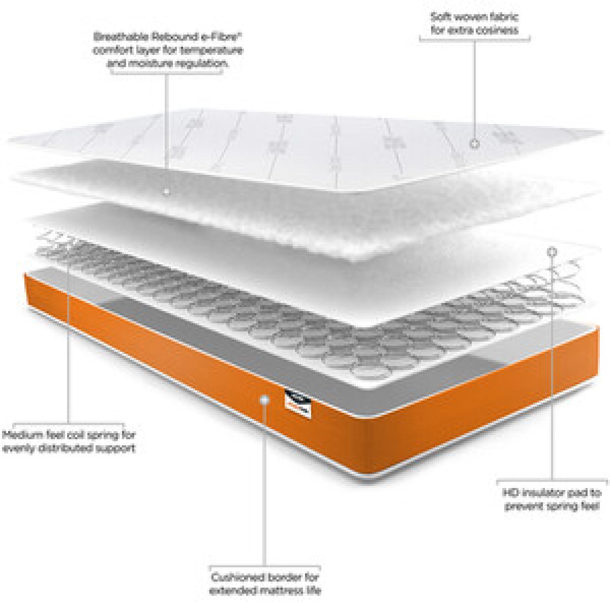 Ideal for bunk beds this Jay-Be Simply Kids Foam Free Mattress is hypoallergenic and constructed with a medium firmness spring to offer evenly distributed support for growing bones and muscles. Topped with a High-Density Eco-insulator and a cushion of Rebound e-Fibre for temperature and moisture regulation, this mattress offers support and cosiness.