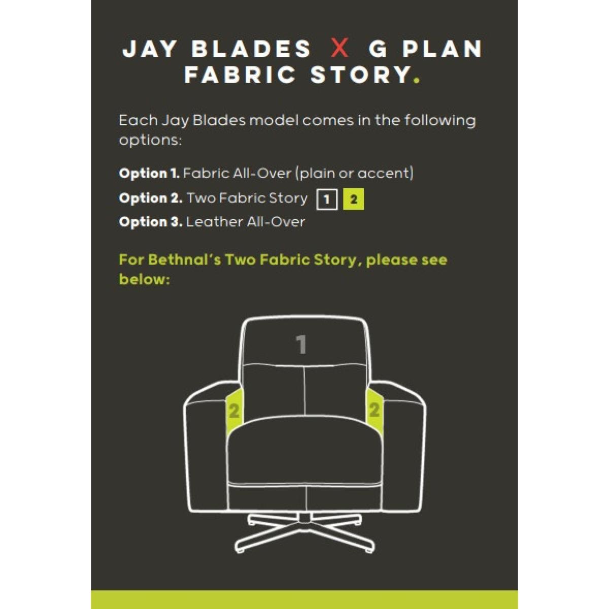 Bold and beautiful. The Bethnal swivel chair is the ultimate place to unravel. With clean lines, retro inspired detailing and a deep seat, Bethnal will add definite style and comfort to any space. Designed to be a safe space to unwind and relax, sink into Bethnal's lavish cushions and take a load off. Available in a range of stunning fabrics, handcrafted to become entirely yours. Finding the perfect chair can be a hard choice to make, but Bethnal will more than likely be your final decision. Pair the Bethnal Swivel Chair with the Bethnal Footstool (sold separately) for the ultimate relaxation experience. Pictured here in Linn Autumn fabric. Features: Handcrafted in the UK Decorative piping & twin-needling detail throughout 4 star swivel base All units come with a G Plan Vintage branded badge. Available in a range of quality fabrics. 25 year frame and frame construction guarantee 10 year spring guarantee Broadway Swivel Chair Dimensions: Height: 48cm Depth: 48cm Width: 65cm Seat Height: 50cm Seat Depth: 56cm Seat Width: 49cm Each G Plan Vintage Bethnal Swivel Chair comes in the following options: Fabric cover all-over (plain or accent fabric) Two fabric story (see image for fabric location) All measurements are approximate and relate to the overall size of the item including soft arm cushions where fitted and back cushions. All units come with a G Plan Vintage branded badge. Available in a range of Fabrics. Swivel chairs are available in one Fabric as well as a Two Fabric Story option. Footstools are available in one Fabric or Leather only. Seat cushions are a fixed-type. Swivel chairs use a 4 star swivel base; footstools use a 4 star non-swivel base. Star bases come with clear plastic protectors for floor & carpet protection. Decorative piping & twin-needling detail throughout. Chair and footstool are sold separately. Scatter cushions are available at extra cost. Back cushions are made using 100% recyclable polyester fibre from recycled plastic waste