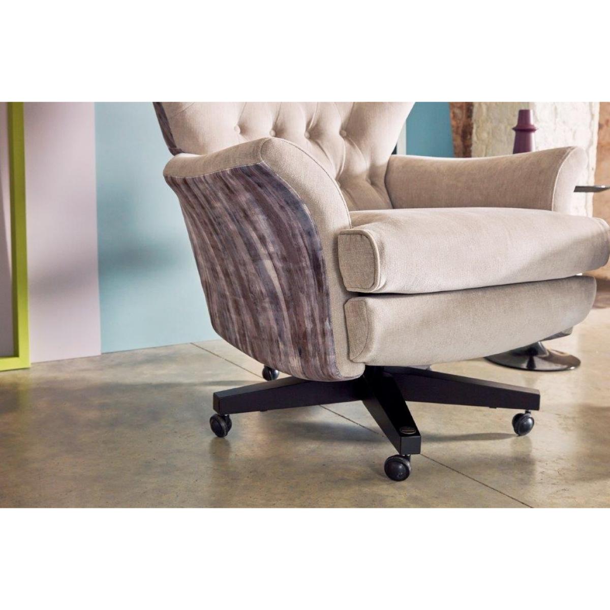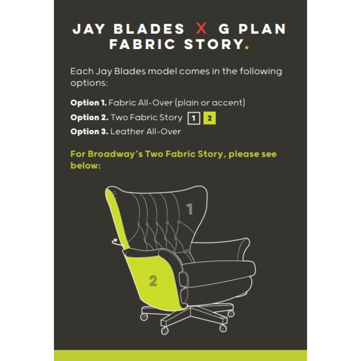 A statement piece like no other. Broadway's iconic design speaks for itself, combined with undeniable comfort, making this vintage-inspired chair the perfect choice for any fashionable home. Make Broadway completely your own, by styling it with lavish fabrics, setting of the classic button detailing and high wingback. Swivel in style and be the envy of all your friends with this remarkable piece of furniture. Pair the Broadway Swivel Chair with the Broadway Footstool (sold separately) for the ultimate relaxation experience. Inspired by the elegance and sophistication of the 1960s, Broadway will add a dash of nostalgia to any living space, whilst being the epitome of comfort and class. If you're looking for a piece for furniture steeped in tradition and rich G Plan heritage, look now further than the Broadway. Pictured here in Manhattan Slate and Floresta Citrus two fabric story and in Manhattan Fog and Linn Granite two fabric story in the lifestyle image. Features: Handcrafted in the UK Decorative stitching throughout Black castors as standard 5 star swivel base All units come with a G Plan Vintage branded badge. 25 year frame and frame construction guarantee 10 year spring guarantee Broadway Swivel Chair Dimensions: Height: 48cm Depth: 48cm Width: 65cm Seat Height: 50cm Seat Depth: 56cm Seat Width: 49cm Each G Plan Vintage Broadway Swivel Chair comes in the following options: Fabric cover all-over (plain or accent fabric) Two fabric story (see image for fabric location) Important Information: All measurements are approximate and relate to the overall size of the item including soft arm cushions where fitted and back cushions. All units come with a G Plan Vintage branded badge. Available in a range of Fabrics, Swivel chairs are available in one Fabric as well as a Two Fabric Story option. Footstools are available in one Fabric only. Seat cushions are a fixed-type. Swivel chairs use a 5 star swivel base; footstools use a 4 star non-swivel base. Star bases come with clear plastic protectors for floor & carpet protection. Chair and footstools come with a black castors as standard. Decorative stitching detail throughout. Chair and footstool are sold separately. Scatter cushions are available at extra cost. Back cushions are made using 100% recyclable polyester fibre from recycled plastic waste.