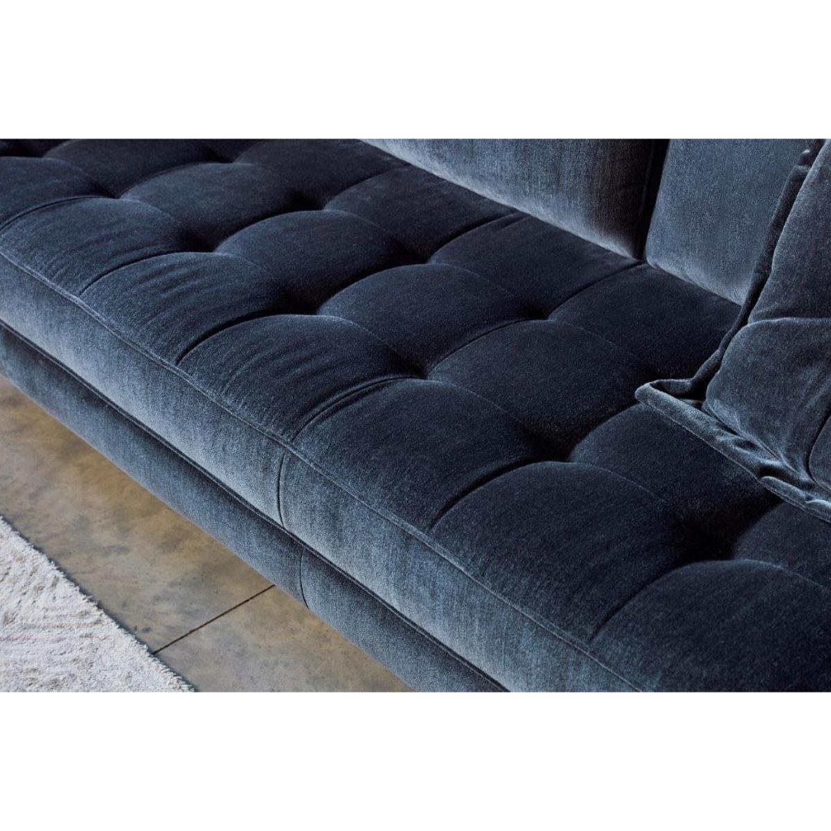 Slim, sleek, and sophisticated. Ridley's clean lines, beautiful piping, and distinctive pulled seat detailing offer a contemporary and yet timeless design style. Taking inspiration from mid century furniture, Ridley will add a touch of vintage charm to any room. With the option of adding an accent fabric onto the sides, you can make Ridley even more eye-catching than it already is. A modern twist on ageless elegance. Perfect for casual living, whilst offering versatility for a family environment, Ridley will soon become a firm favourite with everyone. The gorgeous tufting detail on the seat cushions is incredibly inviting, making Ridley the perfect place to spend time with friends, or lounging around by yourself. Ridley can be customized even further, with the option of adding either more traditional wooden feet or a more contemporary metal plinth, to fully fit into your domestic setting style. The Ridley sofa is pictured here in the Manhattan Slate and Floresta Citrus two fabric story. Grand Sofa Dimensions: Height: 90cm Depth: 97cm Width: 240cm Seat Height: 46cm Seat Depth: 58cm Seat Width: 210cm Features: Handcrafted in the UK Available with Ebony Wooden Feet or a Black Metal Plinth Available in a range of quality fabrics, leathers and accent fabrics 25 year frame and frame construction guarantee 10 year spring guarantee Each G Plan Vintage Ridley Sofa comes in the following options: Fabric cover all-over (plain or accent fabric) Two fabric story (see image for fabric location) Leather cover all-over Choice of Wooden Feet or a Metal Plinth Important InformationAll measurements are approximate and relate to the overall size of the item including soft arm cushions where fitted and back cushions. All units feature the G Plan Vintage signature pink panel on RHF side of the inside back. All units come with a G Plan Vintage branded badge. Available in a range of Fabrics, Leathers & Accent Fabrics. All Units are available in one Fabric or Leather as well as a Two Fabric Story option. All units have the option of Wooden Feet or a Metal Plinth. Wooden feet come in Ebony as standard. Metal Plinths come with Metal feet in Black as standard. Seat cushions are a fixed-type. Scatter cushions are available at extra cost. Back cushions are made using 100% recyclable polyester fibre from recycled plastic waste