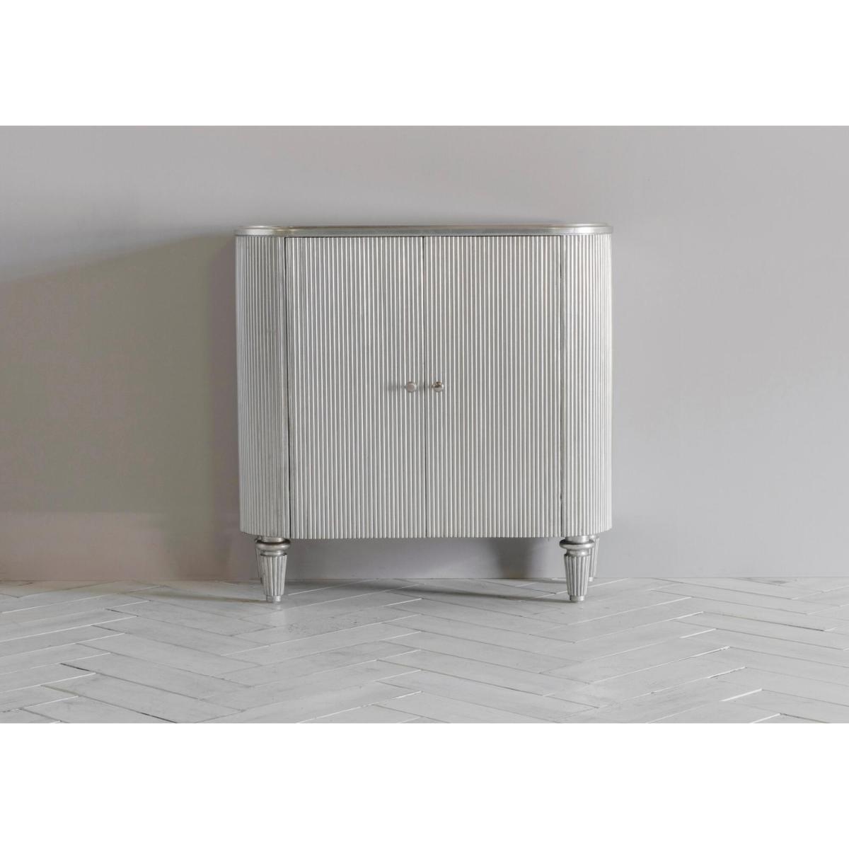 I love the Jay cabinet for its subtle fluted detailing and soft grey finish - it adds interest without overwhelming a scheme. It works equally well in a pared-back, contemporary flat or a more traditional home, thanks to its neat proportions and classic turned legs. Inside, adjustable shelves and a built-in stemware rack make it easy to organise glassware, while leaving room for favourite bottles. For styling, top it with a pair of low decanters, a small vase of greenery and a slim wall mirror behind to reflect light and create depth. Position it near your entertaining space for maximum practicality.