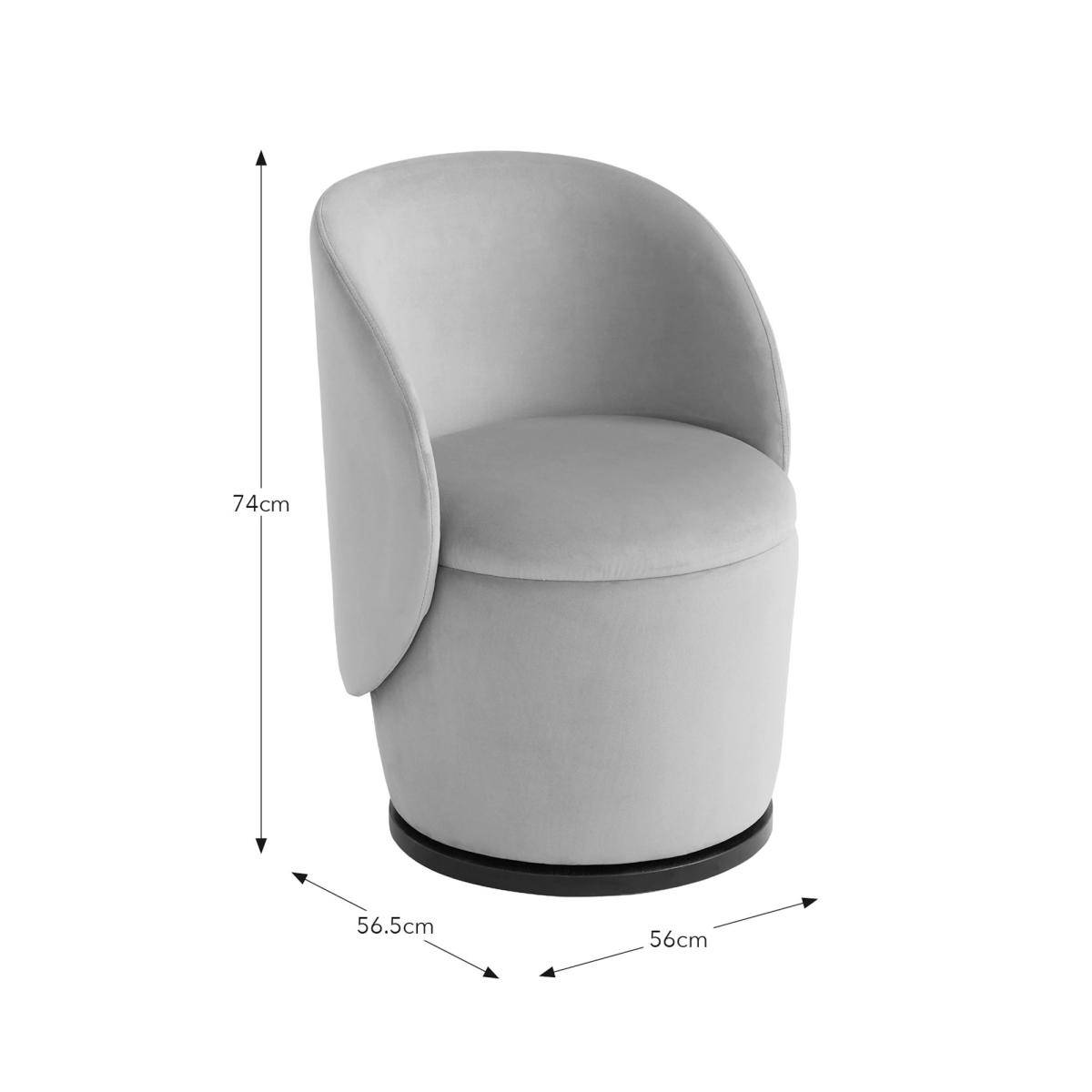 * Modern Dining Chair * Made from Durable & Stylish Velvet * Curved Shape - Comfortable * Handy Swivel Motion Made from gorgeous velvet fabric, the Jaylen Swivel Dining Chair is the perfect addition to your home. It boasts a curved and ergonomic shape, and is complete with a convenient swivel motion.