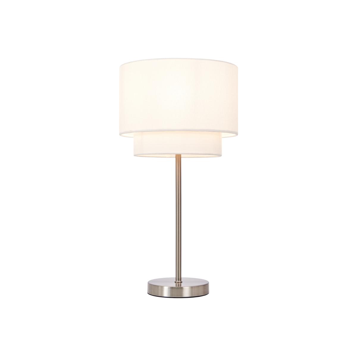 Offering a balance of simplicity and style, the Jayne table lamp makes an elegant addition to desks, side tables or consoles. It combines a polished chrome base with a fresh white two-tiered shade for a clean, modern look. Compact in size, its ideal for layering lighting in any room and suits Scandi interior decor perfectly.