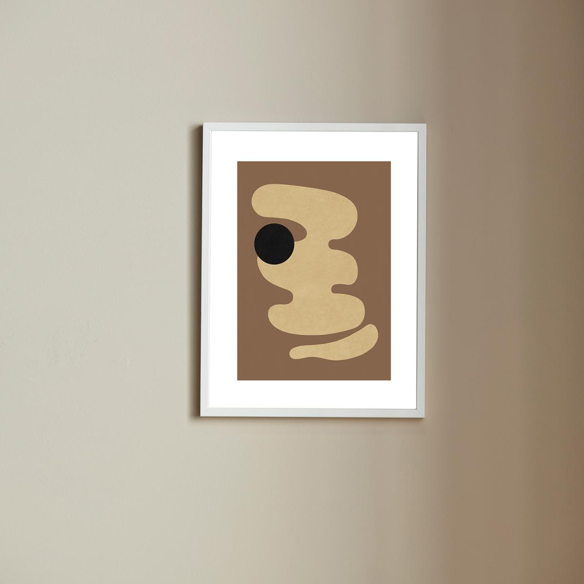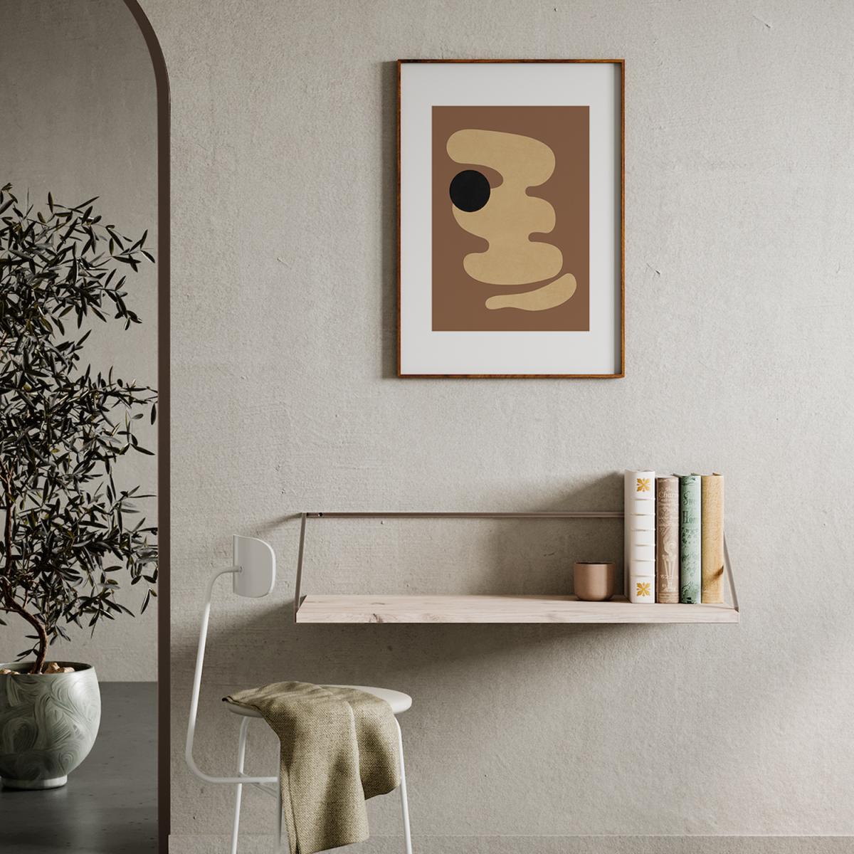 I love this print for its modern, abstract appeal-it's versatile enough to complement a variety of interiors. It works particularly well in minimalist or Scandinavian spaces, where its earthy tones can add warmth without overwhelming, but it also pairs nicely with neutral or muted palettes. Practical styling tips include grouping it with other art or framing it above a simple console or sideboard to create a focal point. The size makes it ideal for smaller walls, and it can easily be integrated into both contemporary and more eclectic settings, bringing subtle visual interest without dominating the room.