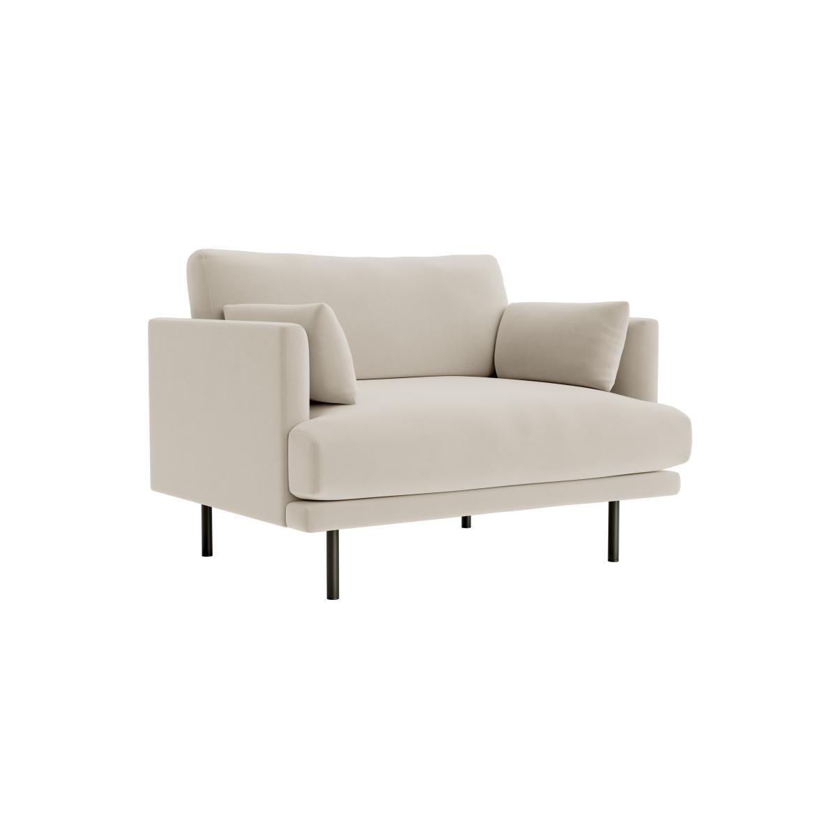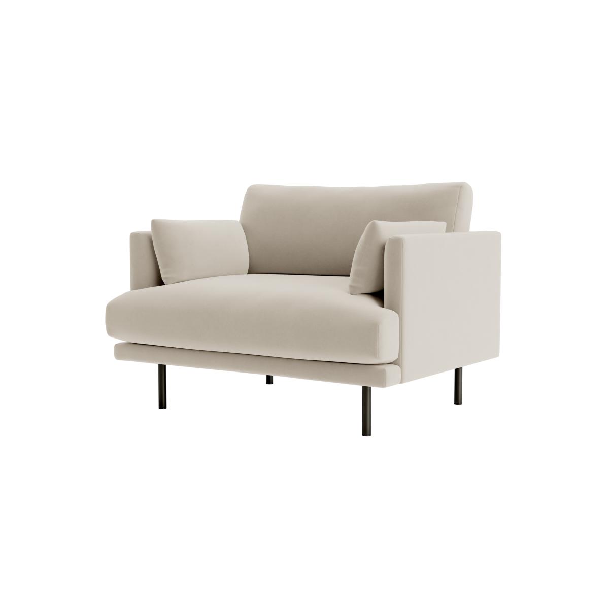Looking for that 'I could stay here forever feeling?' The minimalist design of this streamlined love seat definitely delivers on comfort. Slouch back in the deep seat or sit up straight - all while reading something...
