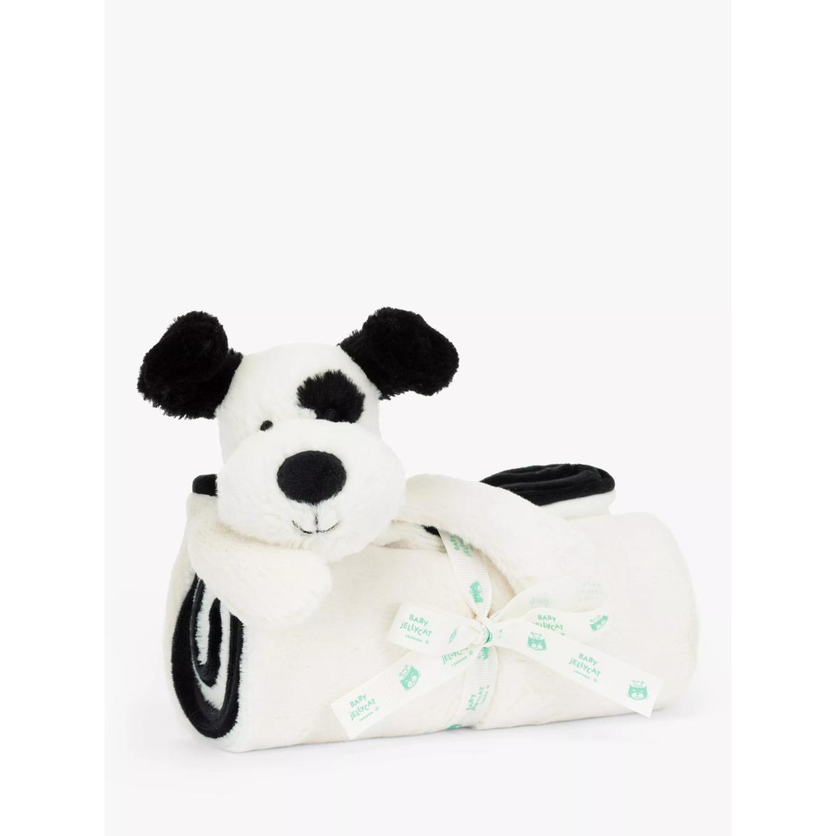Jellycat Bashful Puppy Baby Blankie, Black/Cream
