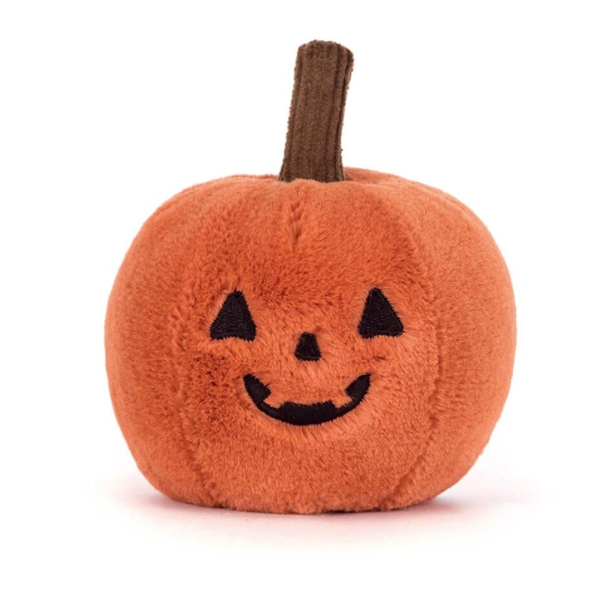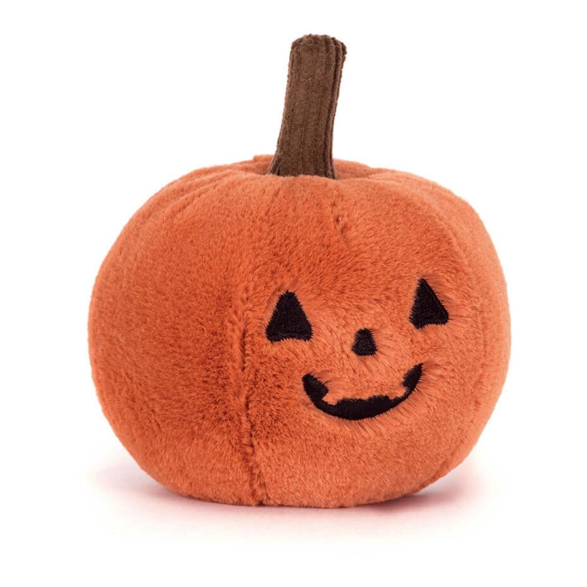 Bring a pumpkin full of personality to cuddle time with Jellycat Ooky Jack O’ Lantern! With his bright orange plush, suedey stalk, and wide stitched grin, this soft and spooky friend is bursting with Halloween charm. More huggable than haunting, he’s the perfect seasonal companion and a must-have for any Jellycat fan or festive collection. Dimensions: 10cm x 12cm x 12cm Sitting Height: 10cm Main Materials: Polyester Inner Filling: Polyester Fibres, PE Beans Embroidered Eye Safety & Care 30°C degree wash only Do not tumble dry, dry clean or iron. Check all labels upon arrival of purchase Safety Recommendations: Suitable from birth Tested to and complies with EN71, ASTM, and ISO 8124 All screens vary in colour reproduction and whilst every effort has been made to display the colour as accurately as possible it is for guidance only.