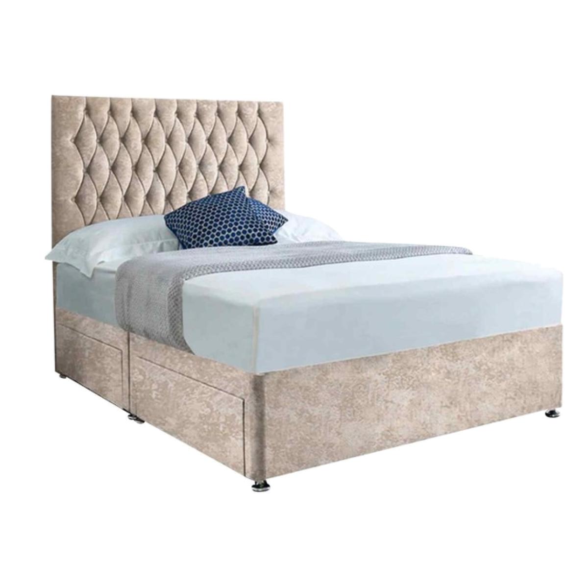 Jemma Divan Bed Set with Headboard and Mattress - Crushed Fabric, Non Storage - Cream / King