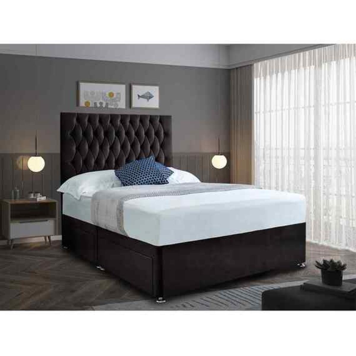 A contemporary style for any bedroom setting. This affordable yet quality divan bed comes with a 20 inch headboard, base and a memory spring mattress. This bed is available in 6 sizes and various fabrics and colours. There are storage options of having 2 drawers. The mattress is a 13.5 Open Coil Bonnell spring with a layer of responsive memory foam, hand tufted as it secures the classic mattress fillings and enhances the performance and life span. A medium to firm mattress with a depth of 10 inches this amazingly priced bed set represents great value for money.
