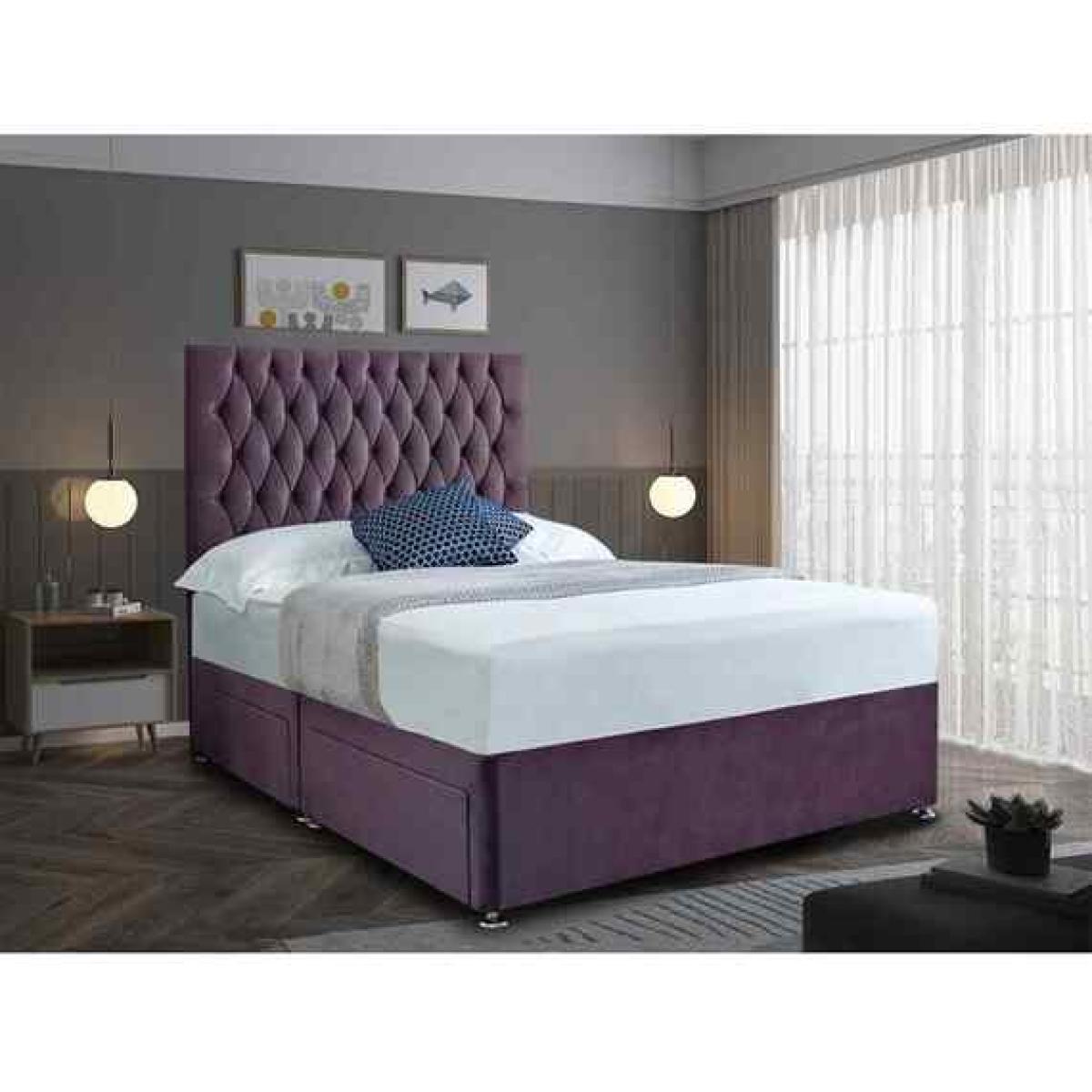 Jemma Divan Bed with Headboard Mattress-Chenille Fabric, 2 Drawers Left Side - Purple / Double