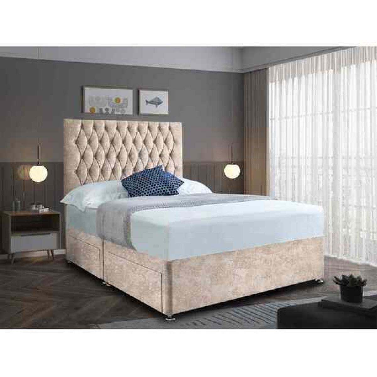 A contemporary style for any bedroom setting. This affordable yet quality divan bed comes with a 20 inch headboard, base and a memory spring mattress. This bed is available in 6 sizes and various fabrics and colours. There are storage options of having 2 drawers. The mattress is a 13.5 Open Coil Bonnell spring with a layer of responsive memory foam, hand tufted as it secures the classic mattress fillings and enhances the performance and life span. A medium to firm mattress with a depth of 10 inches this amazingly priced bed set represents great value for money.
