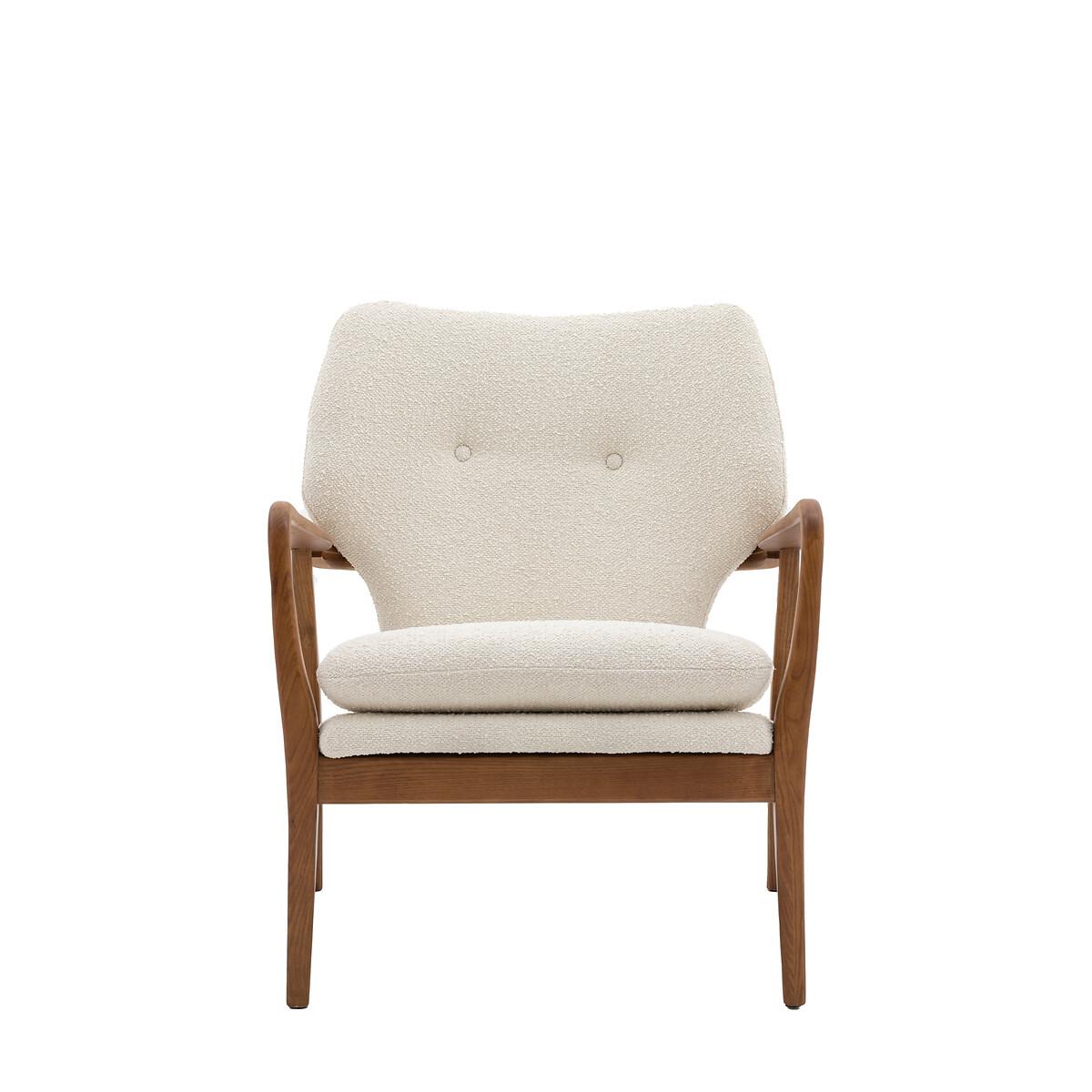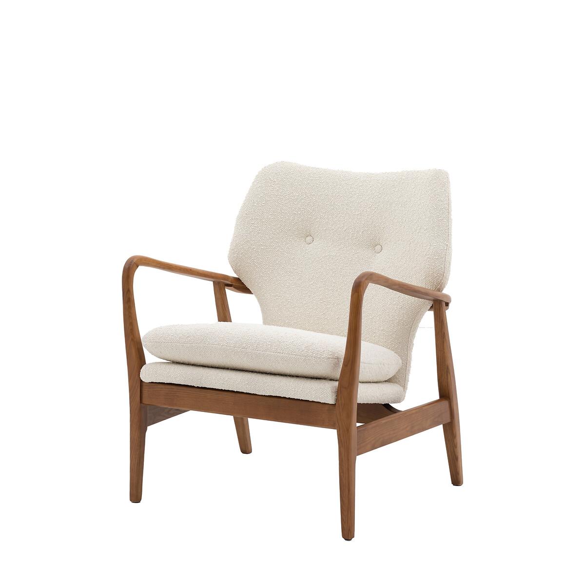 An elegantly shaped solid ash wood frame is paired with textured boucle cotton mix fabric with button details and a soft cushioned seat. Product details • Grained wood frame • Cotton mix upholstery • Buttoned back • Fully assembled. Product Composition - Oak / Plywood / Polyester / Foam / Polyfibre / Cotton. Product Dimensions -Overall product D74 cm x W73 cm x H85 cm , Weight - 14 KGSeat height - 47 cm. Seat depth - 53 cm. Seat width between the arms - 60.5 cm Package Dimensions - 89 cm x 76.5 cm x 74.5 cm, Weight 19.55 kg. This product will be dispatched by one of our trusted suppliers. You’ll be contacted by their selected courier about your delivery. Please note: this product cannot be delivered to all Offshore Islands, Northern Ireland or Republic of Ireland. GALLE01