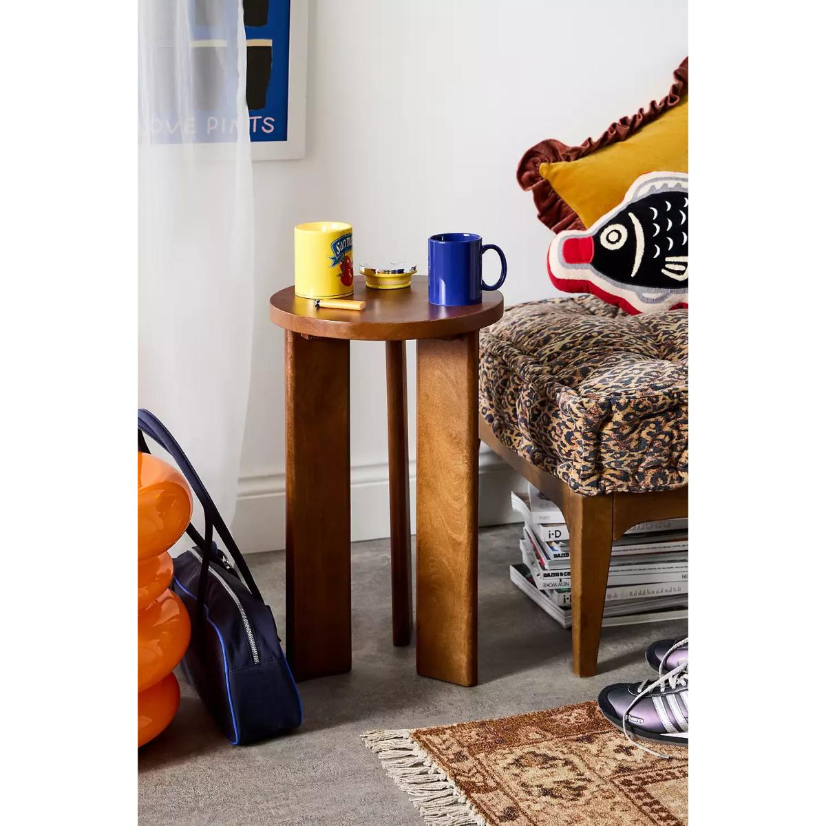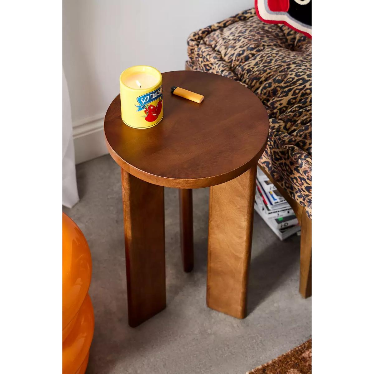 Versatile side table crafted from Mango Wood. Circular tabletop with three legs, perfect for holding your coffee, books, and more! *Online return only. This item cannot be returned instore. Please note furniture items currently cannot be shipped to Northern Ireland or The Republic of Ireland. Delivery of large furniture items may take 1-2 weeks and are therefore not eligible for Next Day Delivery.* **Content + Care** \- 100% Mango wood \- Wipe clean **Size** \- 35.5cm x 35.5cm x 56cm