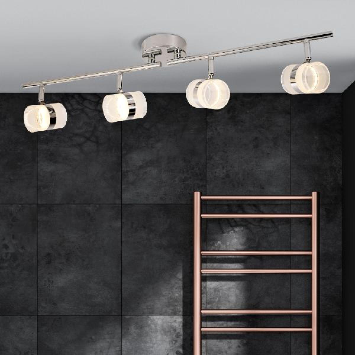I love this spotlight bar for its sleek, modern aesthetic and versatile functionality. Its polished chrome finish and glass accents give it a contemporary edge, making it ideal for minimalist or industrial-inspired interiors. It works particularly well in kitchens, home offices, or bathrooms where focused task lighting is needed. For styling tips, consider pairing it with clean, understated decor to let the fixture shine, or add colour contrast with darker wall finishes as seen in the image. Practicality-wise, it’s great for adjustable lighting in spaces that require flexible illumination, and its streamlined design helps keep ceilings looking uncluttered and spacious.