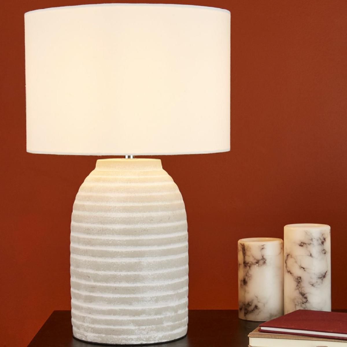 The Jennie Ceramic Table Lamp showcases a sophisticated white and grey colour scheme, making it a perfect addition to any living room or bedroom. The lamp's fabric shade and white base, adorned with a natural subtle pattern, creates a gentle and pleasing glow. With its versatile colour scheme, the lamp seamlessly integrates into a variety of interior decor styles. The Jennie Ceramic Table Lamp showcases a sophisticated white and grey colour scheme, making it a perfect addition to any living room or bedroom. The lamp's fabric shade and white base, adorned with a natural subtle pattern, creates a gentle and pleasing glow. With its versatile colour scheme, the lamp seamlessly integrates into a variety of interior decor styles.