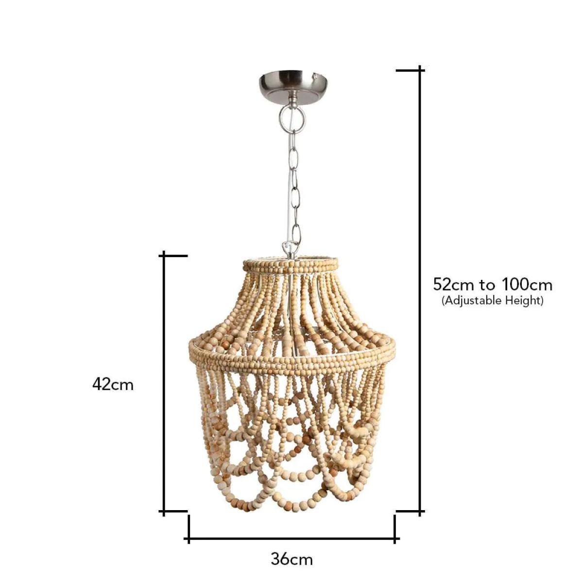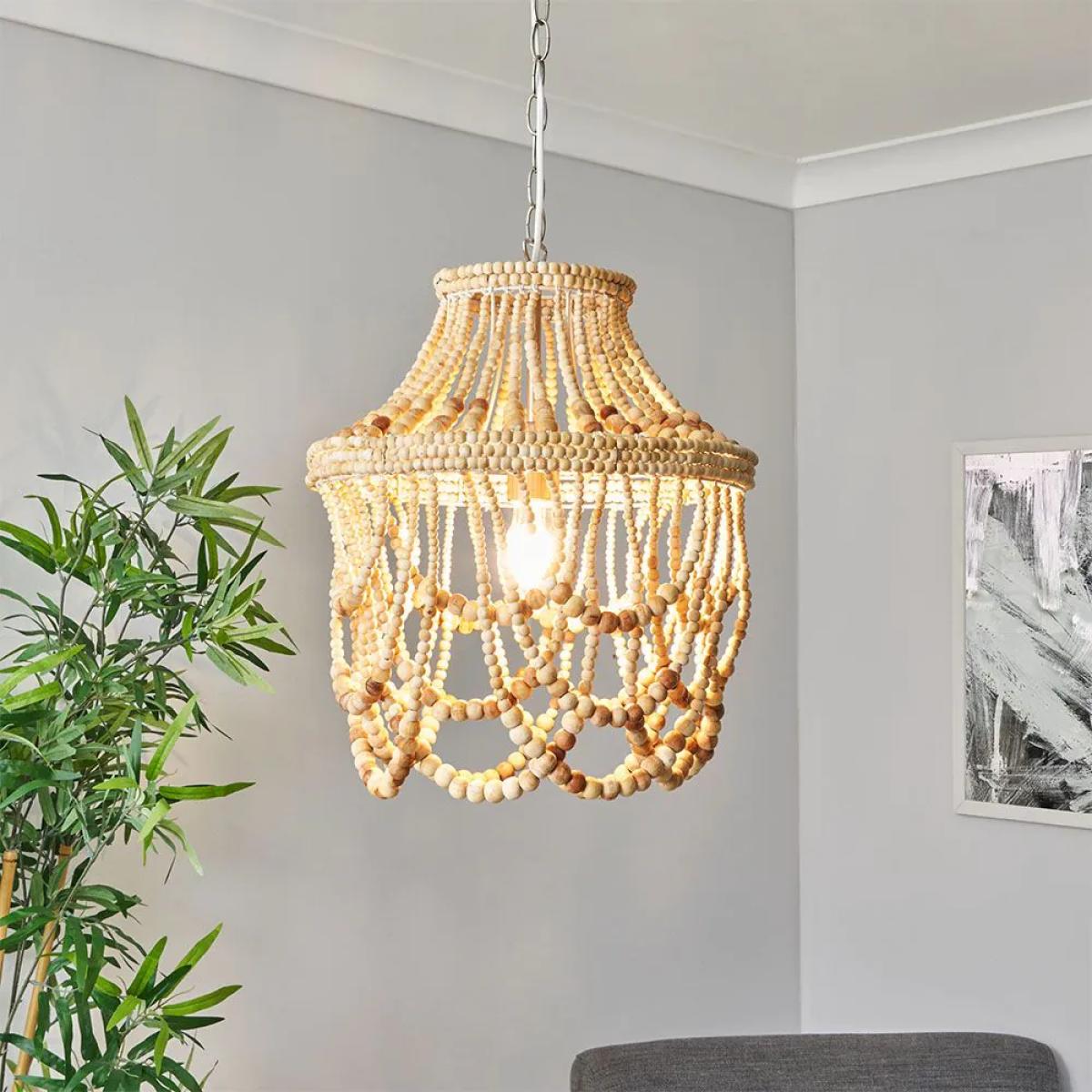 I love this chandy for adding a touch of boho charm to a variety of interiors. Its natural beaded finish makes it a versatile piece that works well in relaxed, coastal, or eclectic schemes. It’s particularly effective in spaces with neutral palettes or layered textures, where it can serve as a statement feature without overpowering the room. When styling, consider hanging it at a height that allows the beads to cascade naturally without obstructing sightlines, and pair with other natural materials like wood or rattan for a cohesive look. It's perfect for overhead lighting in living rooms, dining areas or bedrooms that embrace casual elegance and a hint of artisan craftsmanship.