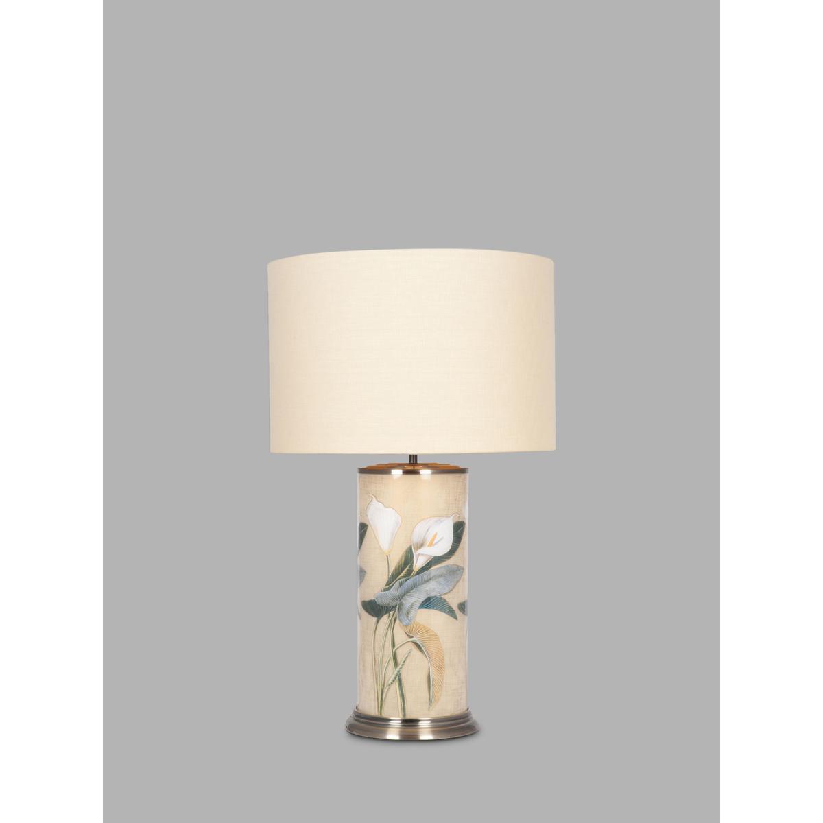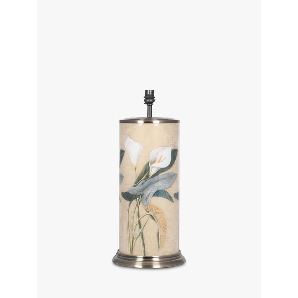 Created like a piece of art, this glass lamp base is decorated using découpage images taken from the RHS Lindley Collection. The striking arum lily is carefully positioned inside the vase, where layers of soft taupe and gold shimmer are applied in layers to create an ethereal background. It's a timeless option for your home. We recommend a lampshade that's Dia.35cm or larger. Good to know... The height of your lamp base should be roughly equal to the width of your lampshade. Classic bases work well with tapered lampshades, while more modern bases work well with straight-sided drum lampshades.