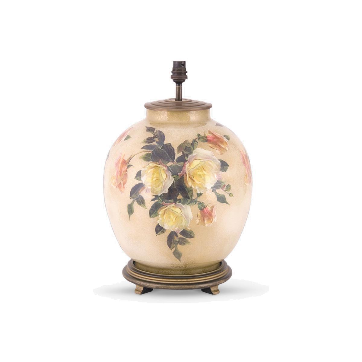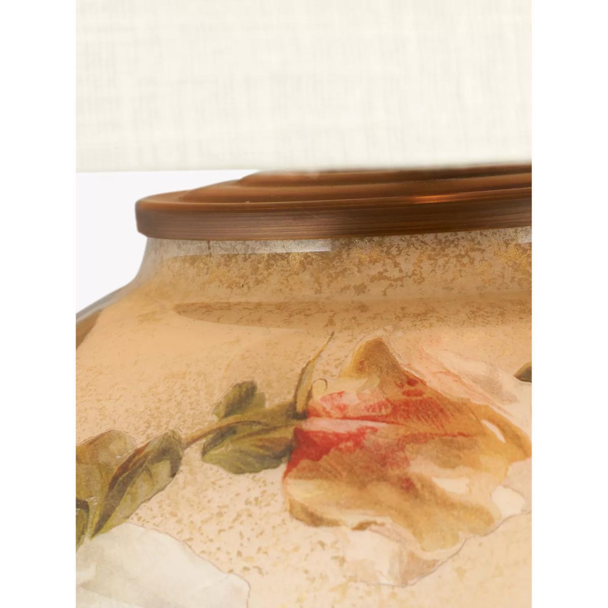 Skillfully made from hand-blown glass, this antique-style lamp base is decorated with cut-out images of old-fashioned roses. Decorative, delicate and sure to catch the eye in your home, the base is accented with resin and metal detail and we recommend a lampshade that's diameter: 40cm and above. Good to know... The height of your lamp base should be roughly equal to the width of your lampshade. Classic bases work well with tapered lampshades, while more modern bases work well with straight-sided drum lampshades.