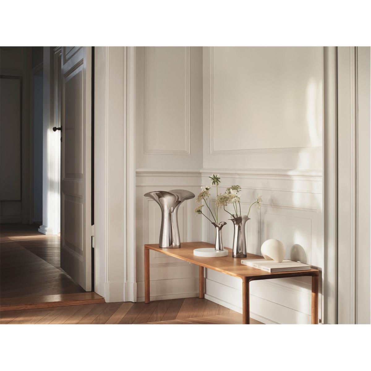 I love this vase for its sleek, contemporary form and the polished stainless steel finish, which makes it a versatile piece for various interiors. It works particularly well in minimal or modern spaces, adding a touch of sophistication without overwhelming the decor. For styling, consider pairing it with simple, monochromatic flower arrangements or greenery to accentuate its reflective surface. Practical tips include using it as a standalone statement piece on a sideboard or dining table, or grouping with other metallic accessories for a cohesive look. Its durable material also ensures it’s a resilient choice for everyday use while adding a modern edge to the room.