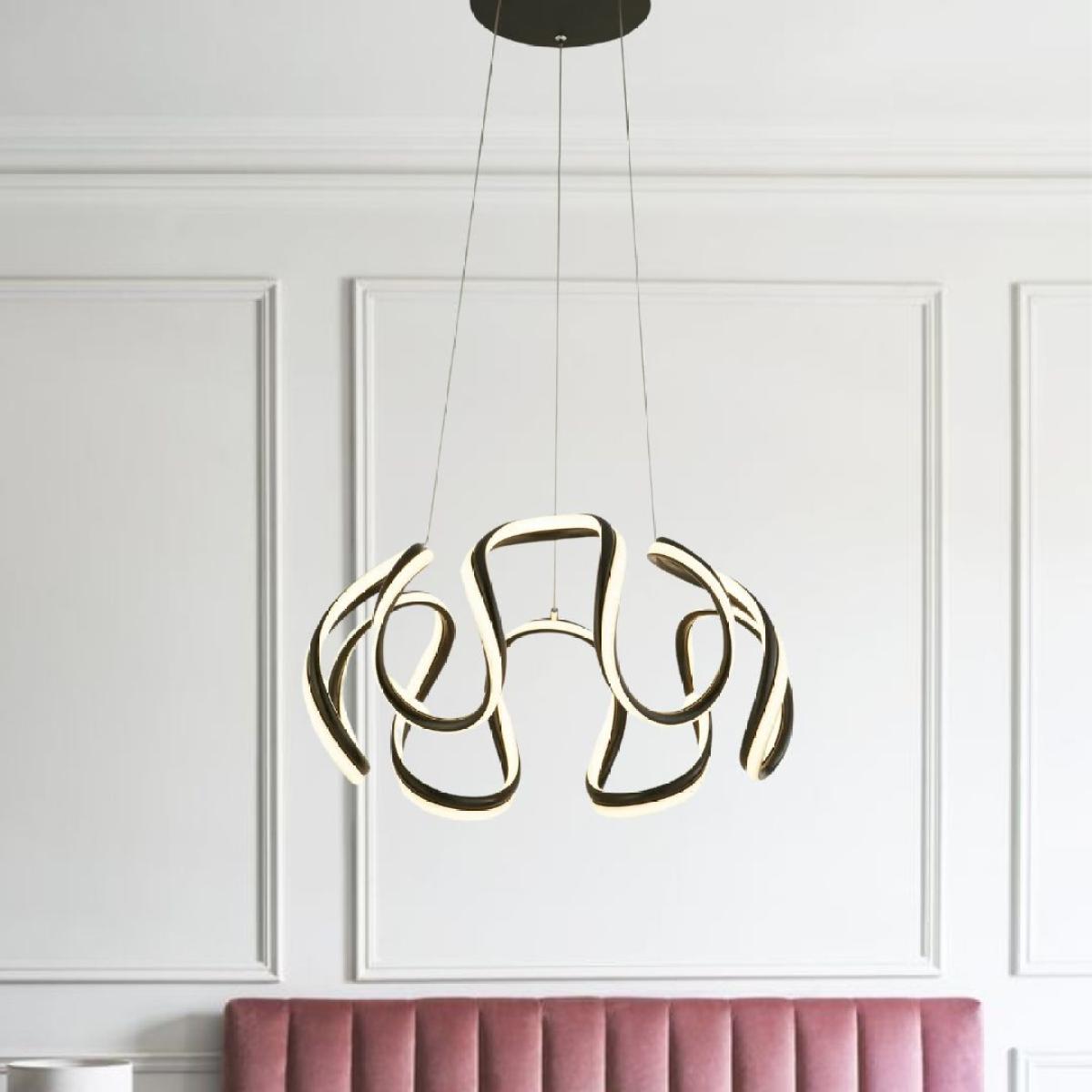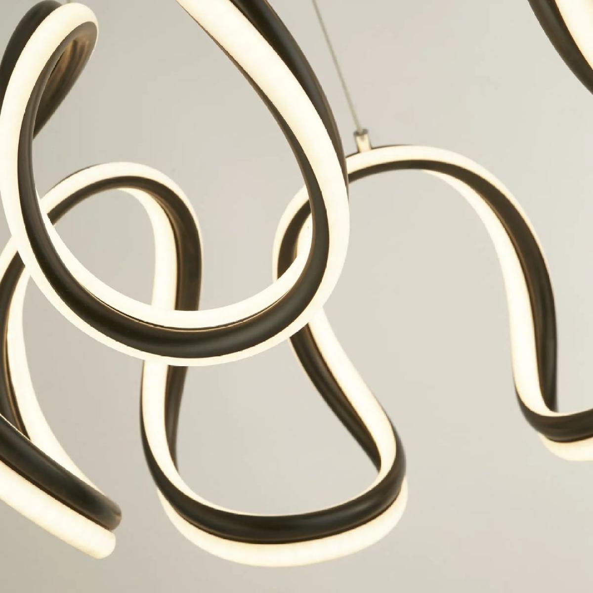 Contemporary LED ceiling pendant with a smooth black finish A statement pendant, the Jensen LED ceiling pendant is a stunning contemporary piece. Boasting a matt black finish and swirling LED band design, the pendant offers a warm white light when lit. Ideal to dazzle guests and would look perfect above a dining table, breakfast bar or in stairwells and hallways. Contemporary LED ceiling pendant with a smooth black finish A statement pendant, the Jensen LED ceiling pendant is a stunning contemporary piece. Boasting a matt black finish and swirling LED band design, the pendant offers a warm white light when lit. Ideal to dazzle guests and would look perfect above a dining table, breakfast bar or in stairwells and hallways.