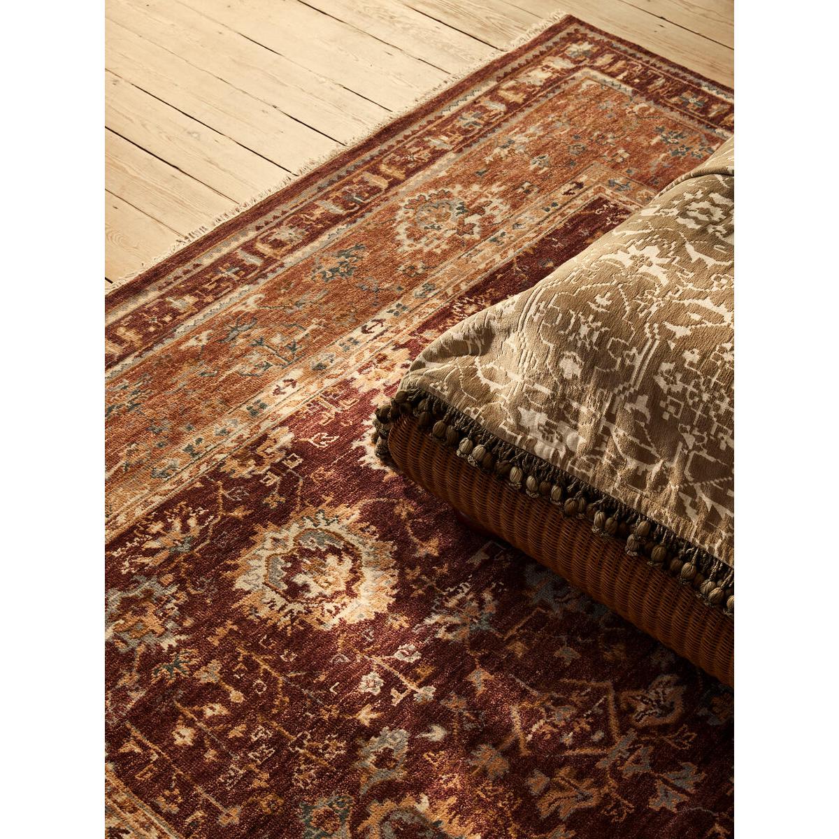 The Jensen rug is inspired by traditional 19th-century Persian rug designs found in Soho Farmhouse. An intricate all-over pattern and decorative border is met with rich and deep warm tones as the perfect grounding layer in any room. Hand-knotted in India from a combination of Afghan and New Zealand wool, each one takes up to six months to craft with 41 knots per square inch. Traditionally, hand-knotted rugs still form the highest quality standard among all types of rugs and, depending on the type of knot, can last for generations in the home. Persian-style rug Hand-knotted in India 41 knots per square inch Each rug takes up to six months to craft 100% Afghan lustre wool and New Zealand wool Short pile Inspired by 19th-century Persian rug designs seen at Soho Farmhouse