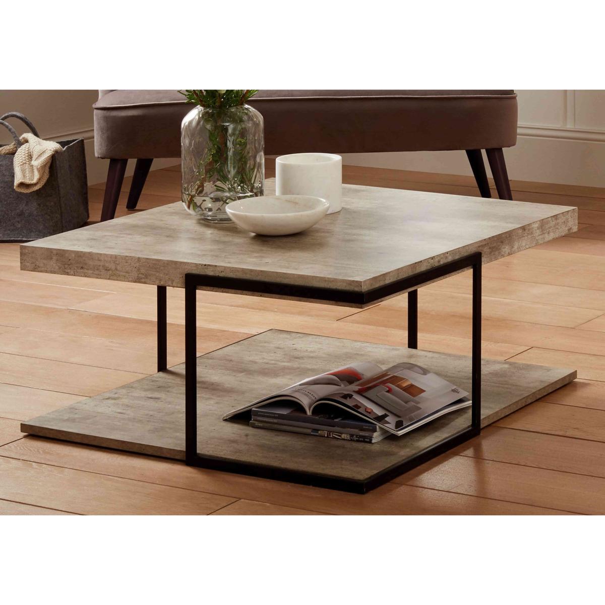 With matt black iron and a concrete-effect tabletop, this coffee table is a dream come true for industrial style lovers. Why you'll love it This coffee table’s designed to turn heads with a New York loft look. Goes perfectly with a modern leather sofa for a classic combo. We love the clean, minimalist shaping of this piece. What you need to know We recommend using coasters and placemats at all times. For indoor use only. Dimensions Width: 85 cm (34 inches) Height: 38 cm (15 inches) Depth: 82 cm (33 inches) Weight: 19.5 kg