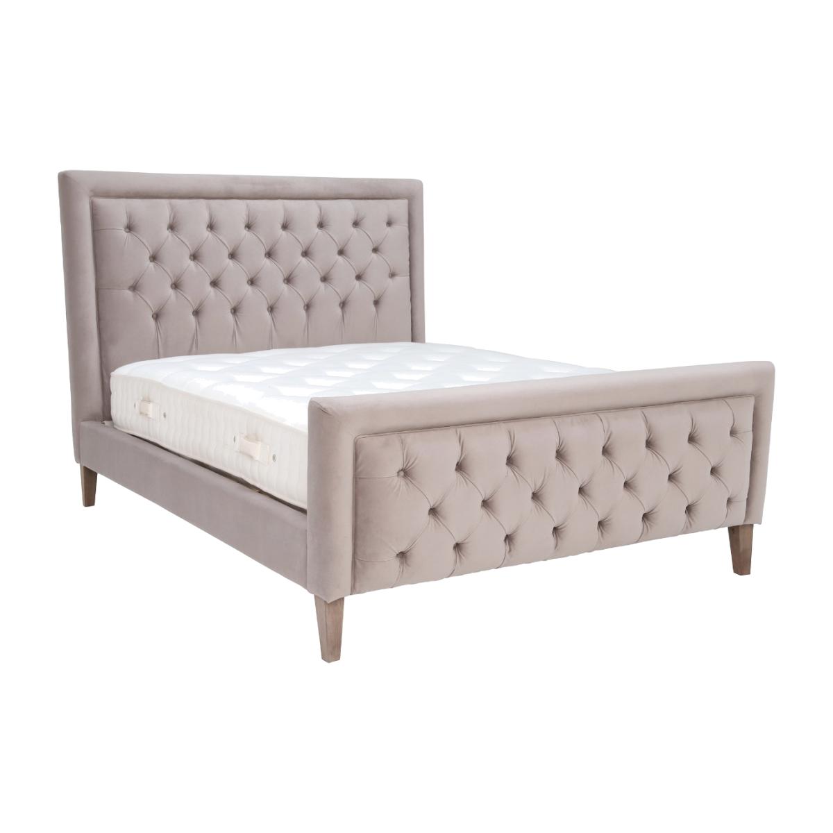 This Jerome High End Bed Frame is a beautifully upholstered bed frame that will add a touch of luxury to any bedroom. The bed has intricate detailing in its design, including beautiful button-through head and foot boards and solid beech feet which are available in various finishes. Hand made in Great Britain, the Jerome Bed Frame is manufactured using traditional methods. This bed is fully upholstered so that the bed can be artfully placed in the centre of the room if desired.