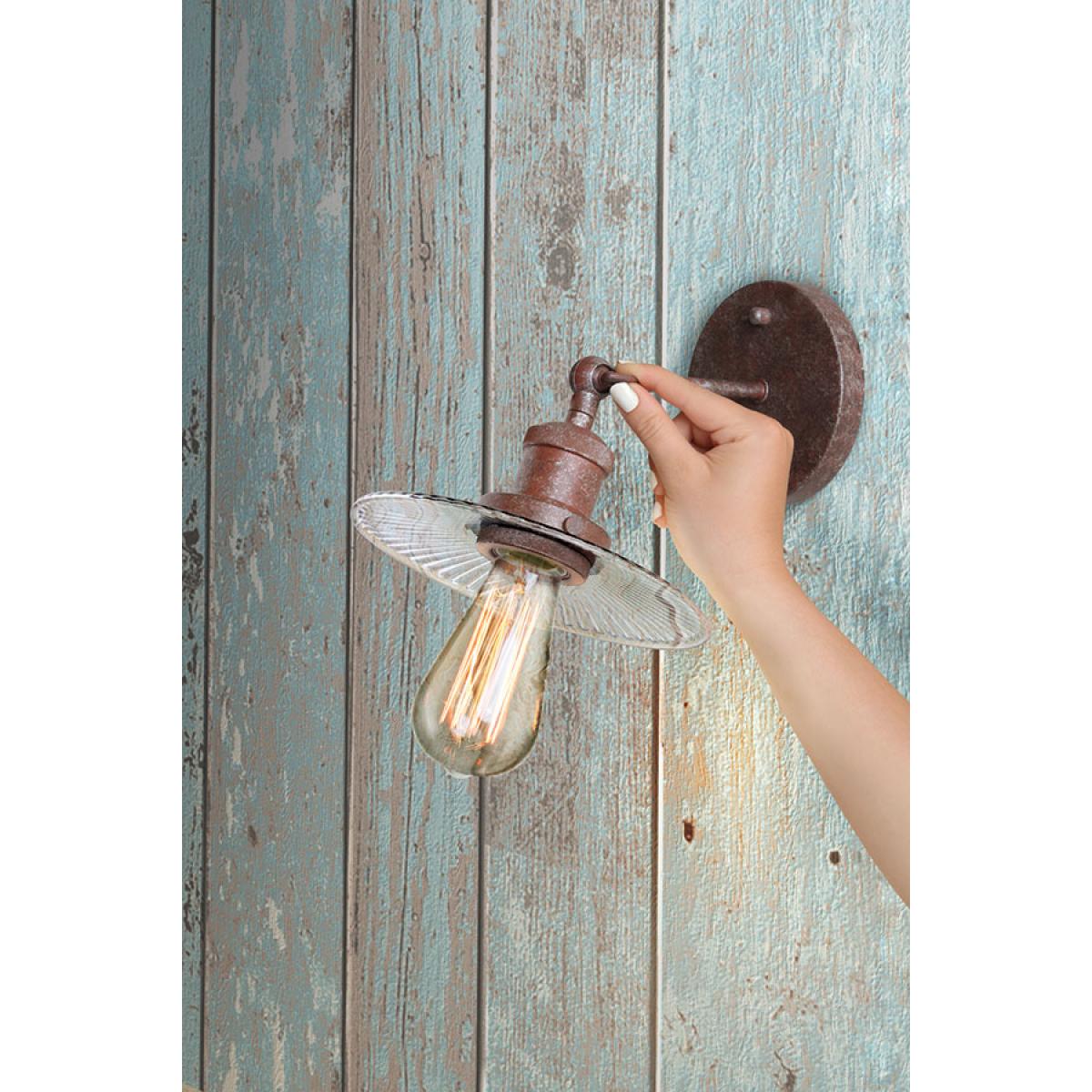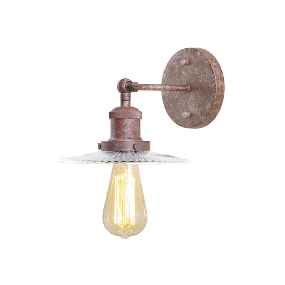 Overview. High quality steel construction with a heavily rusted paint effect finish. Finely engineered metalwork. Adjustable joint for simple repositioning. Ideal for creating a refined, upmarket vintage look. Complete with vintage style, exposed filament bulb. Item specification. Dimensions:L: 21. 5 cm x W: 19cm x H: 17cm. Material : Iron, Aluminum, Glass. Wattage: 40 w. Weight: 3. 00 kg. Bulb type:1x E26/E27. Lightbulb included.