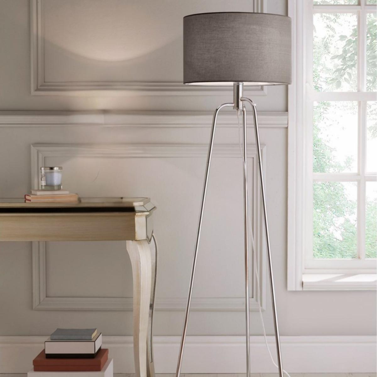 Jerry 1-light floor lamp, featuring a tripod design with staggered leg heights, a polished chrome finish and a grey drum shade. Add a touch of modern elegance to your space with the Jerry tripod floor lamp. Featuring a distinctive tripod design with staggered leg heights, this lamp strikes the perfect balance between contemporary style and functionality. The polished chrome finish exudes sleek sophistication, while the soft grey drum shade casts a warm, inviting glow, making it ideal for living rooms, bedrooms or reading nooks. Designed for both style and durability, the Jerry floor lamp’s sturdy construction ensures stability, and its minimalist aesthetic complements a wide range of interiors. Whether you're looking to illuminate a cosy corner or make a bold statement, this lamp is the perfect blend of form and function. Jerry 1-light floor lamp, featuring a tripod design with staggered leg heights, a polished chrome finish and a grey drum shade. Add a touch of modern elegance to your space with the Jerry tripod floor lamp. Featuring a distinctive tripod design with staggered leg heights, this lamp strikes the perfect balance between contemporary style and functionality. The polished chrome finish exudes sleek sophistication, while the soft grey drum shade casts a warm, inviting glow, making it ideal for living rooms, bedrooms or reading nooks. Designed for both style and durability, the Jerry floor lamp’s sturdy construction ensures stability, and its minimalist aesthetic complements a wide range of interiors. Whether you're looking to illuminate a cosy corner or make a bold statement, this lamp is the perfect blend of form and function.