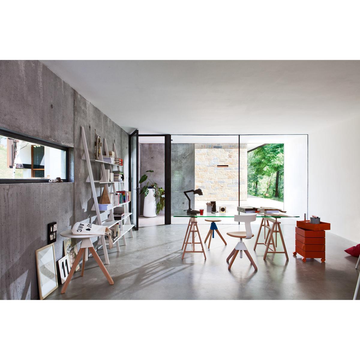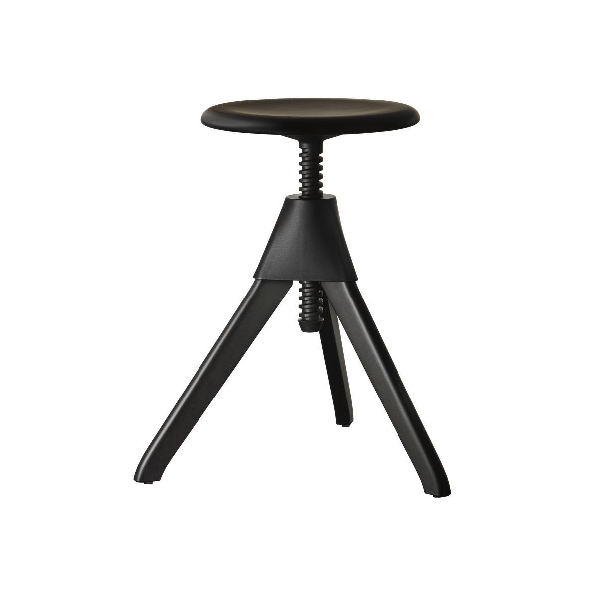 TOM & JERRY is the redesign of a classic furniture typology: the workshop stool. The three-legged stool (in two different heights) is made of solid beech wood with mechanical parts in self lubricant plastic. Due to its smooth-running mechanism it is easy to adjust and convenient to climb. The stools make a versatile addition to working, recreational and private environments alike: an office canteen, the health food restaurant or the kitchen counter at home. It's the working stool of an architect or a scientist, the resting place of a museum guard, telephone stool, valet in a changing room, seating for children at kindergarden.