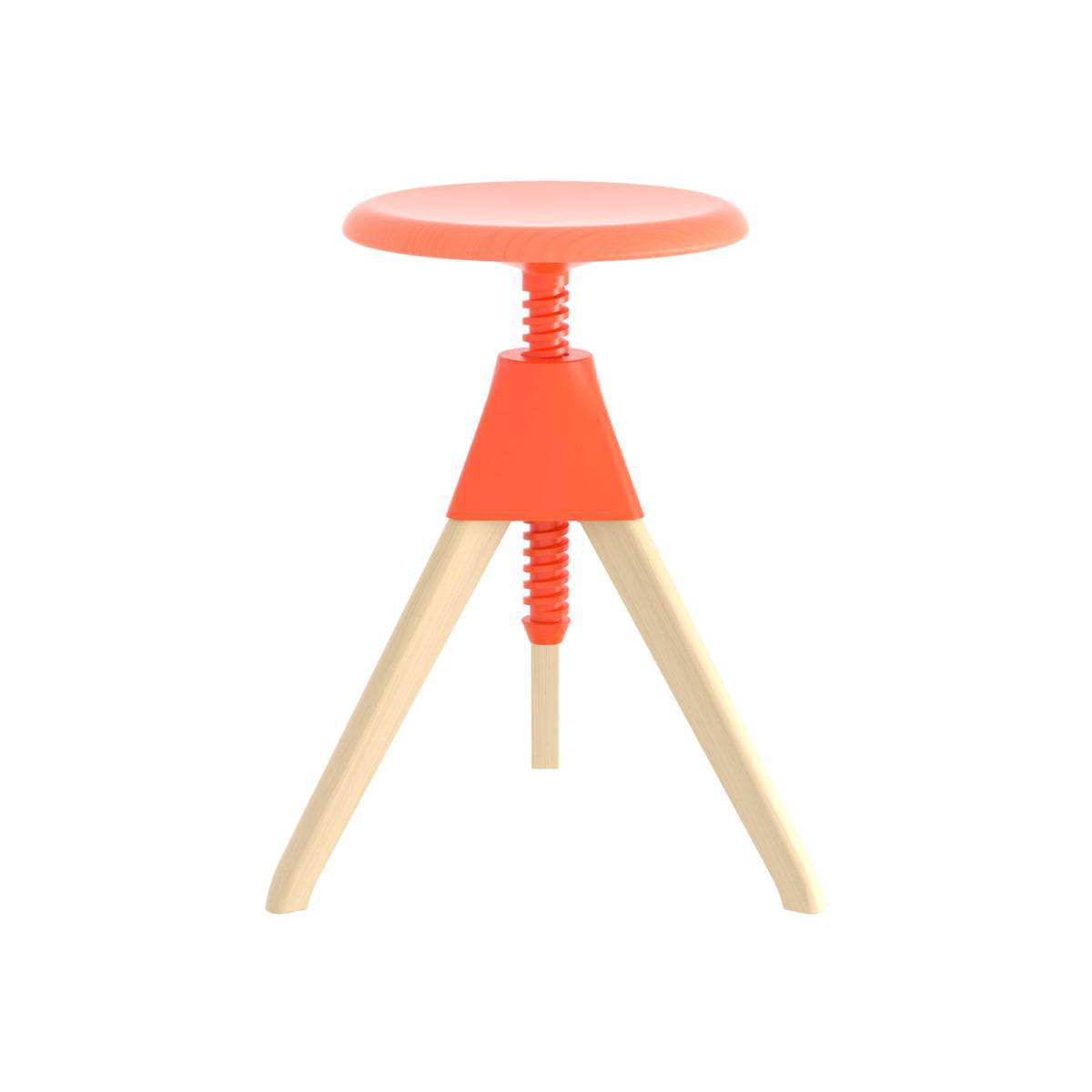 Jerry Stool - / H 50 to 66 cm - Wood & plastic by Magis Orange/Natural wood