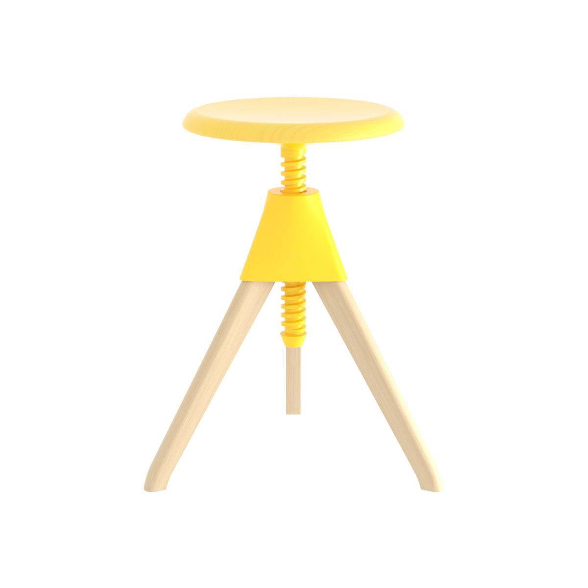 You’ll love the hybrid style of this stool, halfway between contemporary design and industrial style! The famous German designer Konstantin Grcic gives us his cheerful, fun and colourful reinterpretation of the classic workshop stool. Ingenious and very functional, Tom & Jerry has a swivel seat that’s adjustable in height. In this case, the screw mechanism, traditionally made of steel, is made of self-lubricating polypropylene. You’ll love the attractive mix of solid beech and coloured plastic. Tom & Jerry will prove indispensable in every room in the house!.