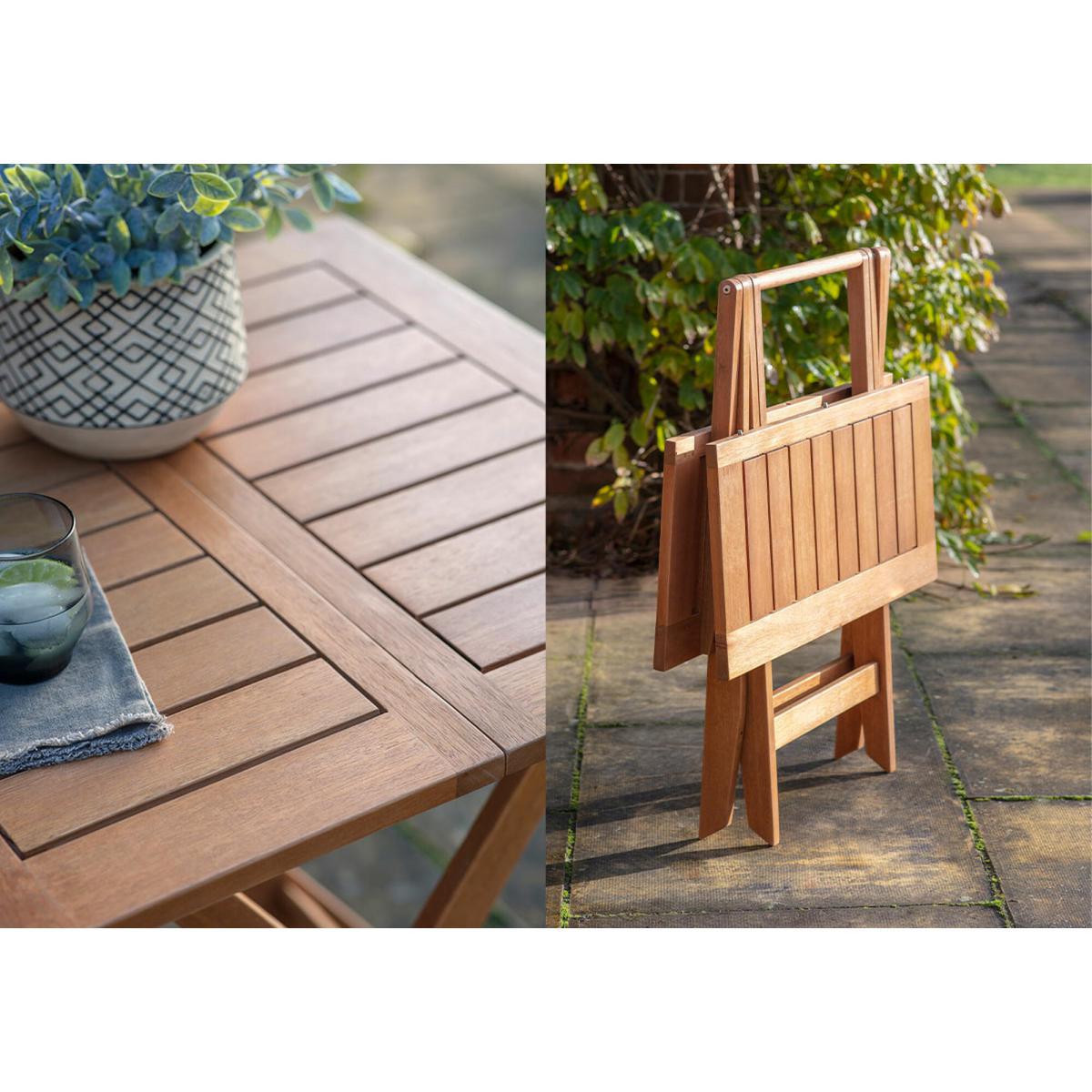 Where traditional styling is given a modern update, the Jerry Wooden Outdoor Square Folding Table features softly arched horizontal and vertical slats with a supportive, gently undulating shape. Foldable and practical, and crafted from Eucalyptus Wood in a warm golden tone. An absolute classic.