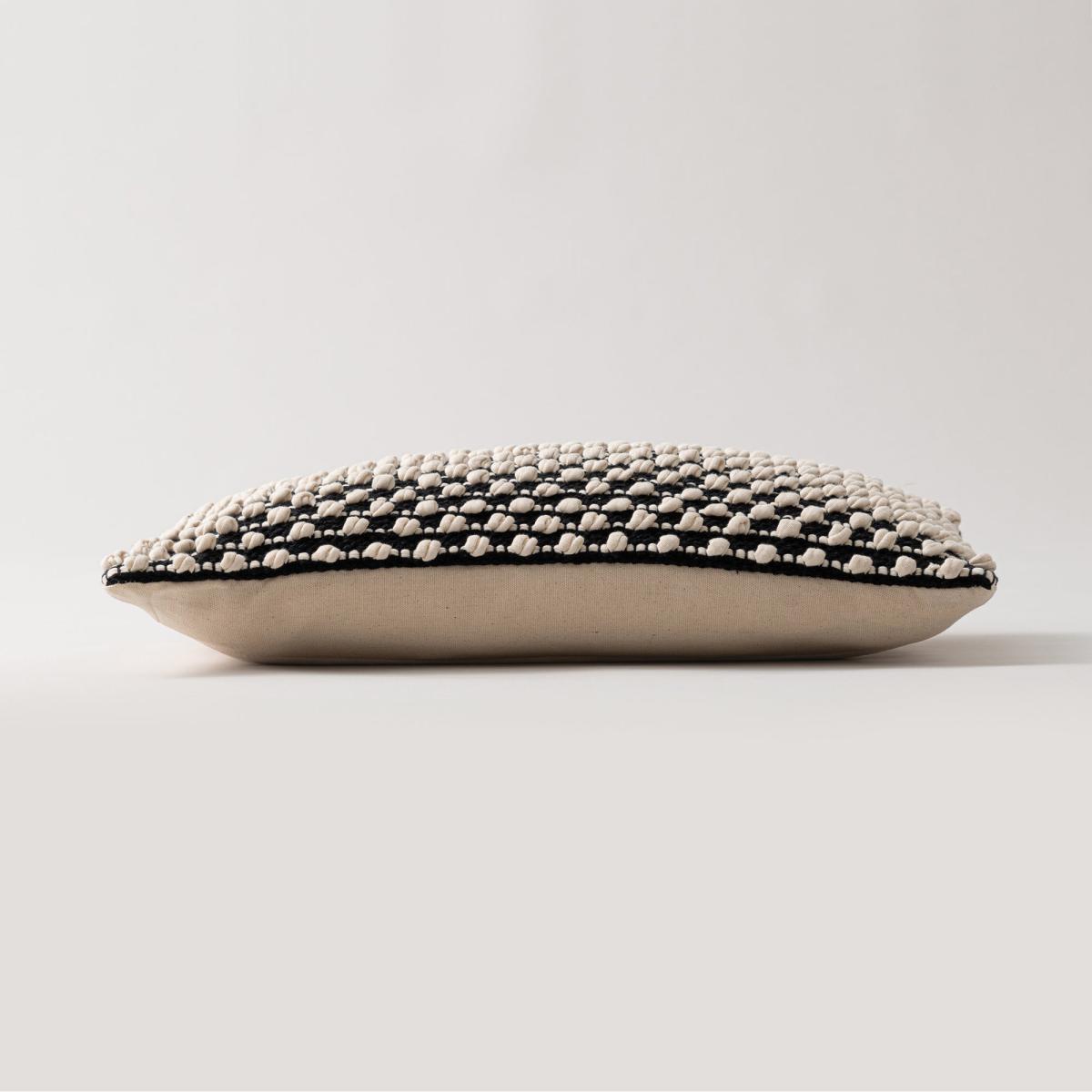 This black jersey bobble cushion is a versatile choice that adds texture and a contemporary edge to both modern and eclectic interiors. I love how its tactile bobble detail creates visual interest without overwhelming the space, making it ideal for sofas or beds where comfort and style are equally important. It works particularly well with neutral colour palettes or other monochrome elements, but can also serve as a striking contrast against softer pastel tones. Practical styling tips include pairing it with plain cushions to let its texture stand out or mixing with patterned pieces for an eclectic look. Its simple yet impactful design makes it a go-to accessory for adding a touch of modern flair to any seating area.