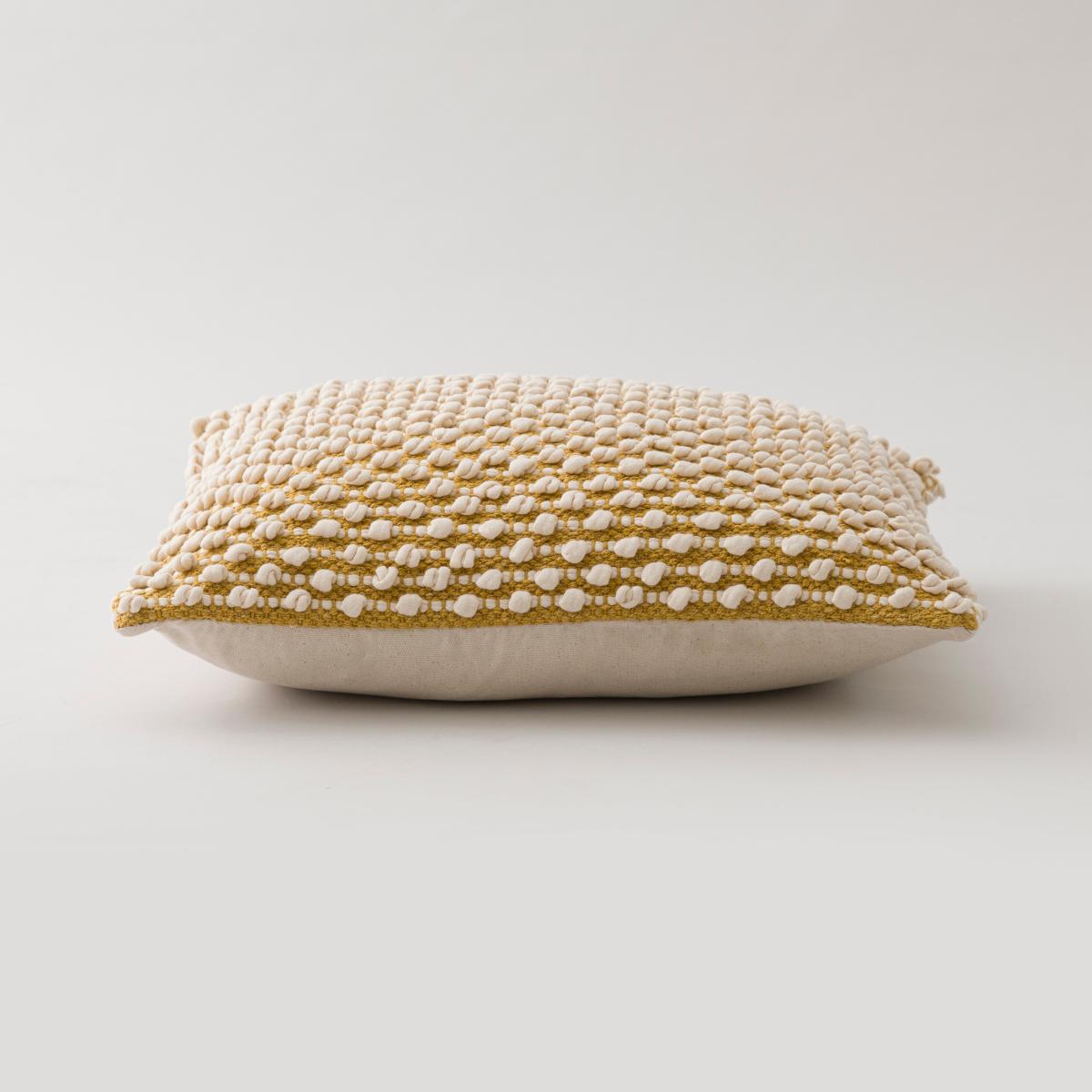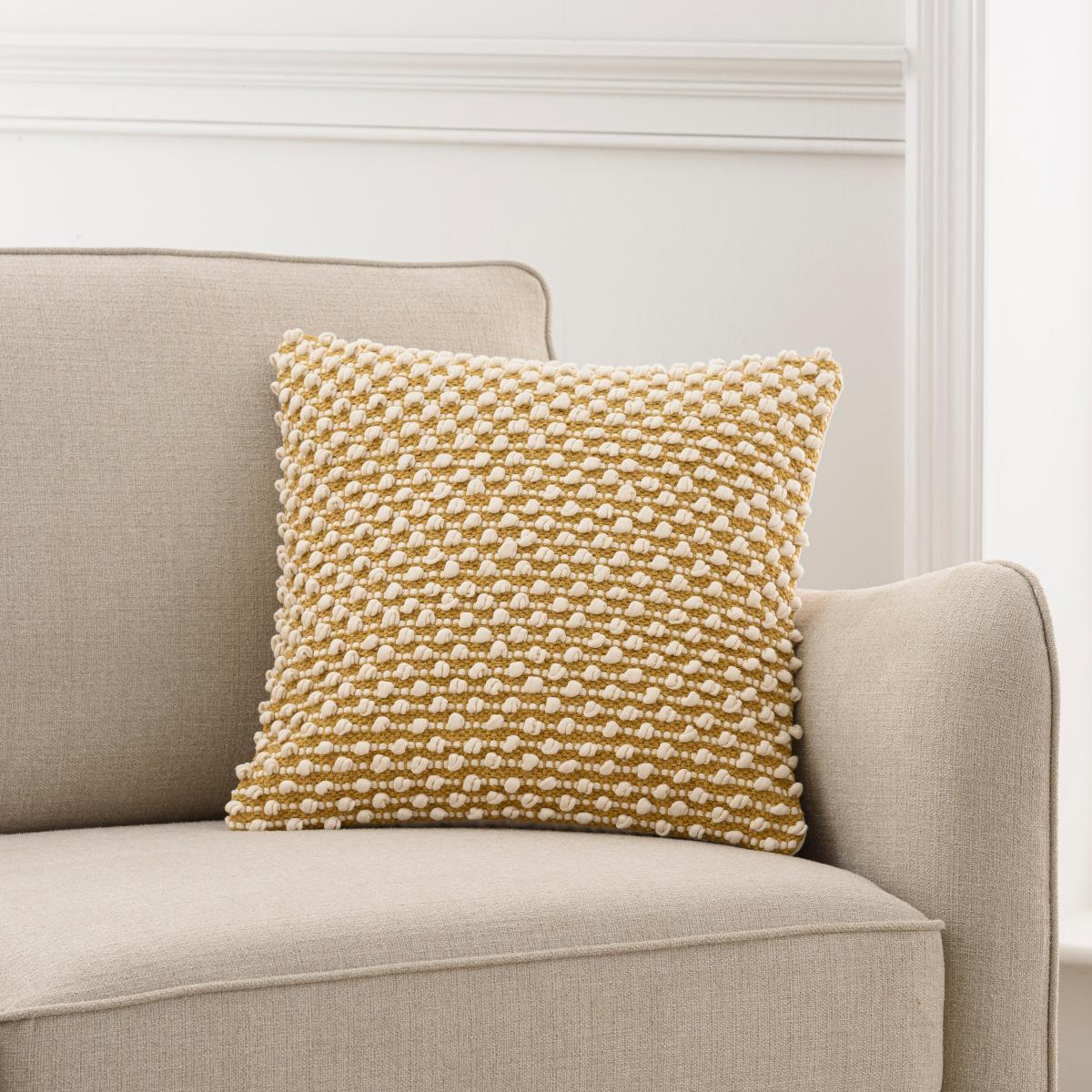I love the jersey bobble cushion cover in ochre for its cosy, textured appeal which adds warmth and visual interest to neutral or muted interiors. It works particularly well in contemporary scandi-style schemes or layered with other textured textiles in living rooms or bedrooms. For practical styling, consider pairing it with a mix of soft linen or velvet cushions to create a relaxed, inviting look. Its vibrant yet earthy ochre shade makes it versatile for both casual and more refined spaces, and the bobble texture brings a bit of tactile charm that elevates simple sofa setups effortlessly.