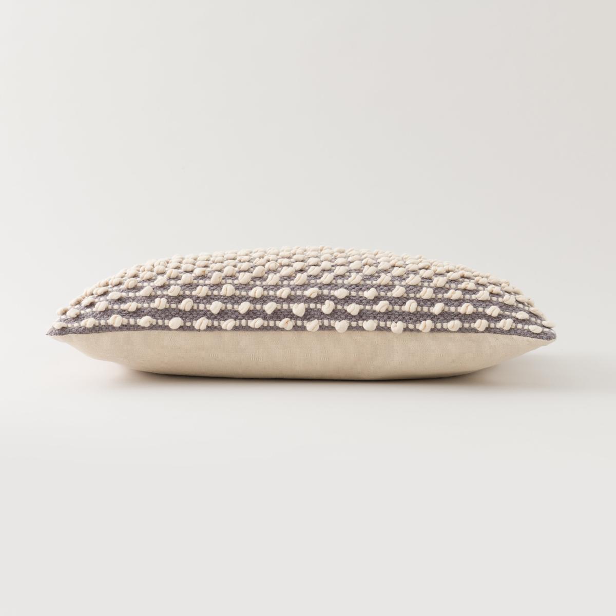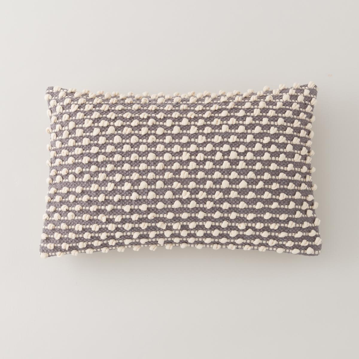 * Bobble design* Textured style* Zip fastening Made with a woven bobble design and striped style, this bobble cushion will be a statement piece within any room of the house, that also complements an array of home decors with its beautiful, modern colourway. The plump cushion, has a choice of fillings - recycled polyester hollowfibre or feather, both secured by a zip, ensuring you can clean the cover easily.