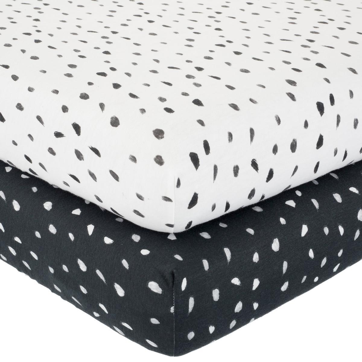Jersey Monochrome Spotted Pack of 2 100% Cotton Fitted Sheets Black and white