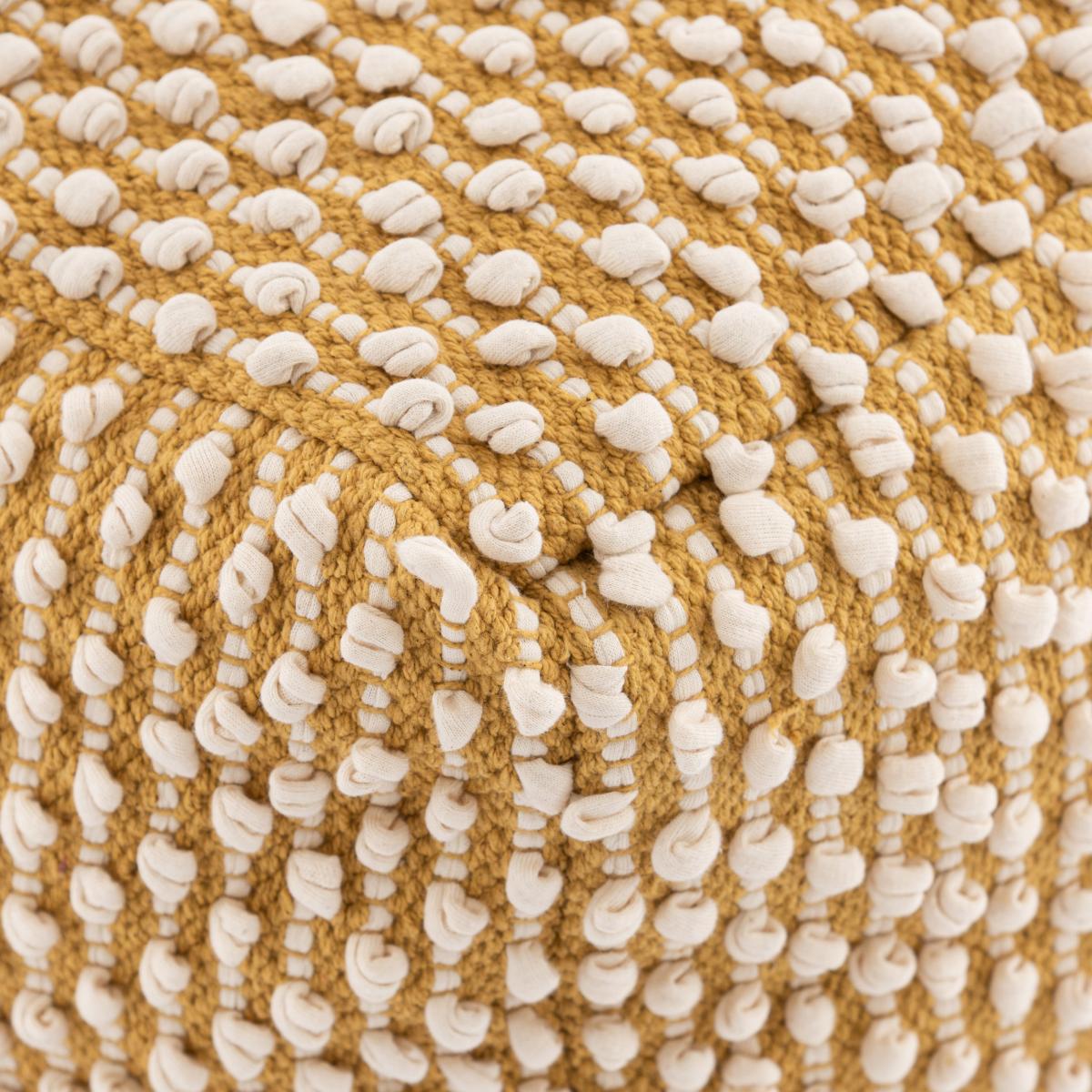 I love this pouffe for its cheerful yellow tone combined with a subtle white pattern-it's a great way to add a pop of colour and texture to a neutral or muted interior. It works particularly well in contemporary or Scandinavian-inspired spaces, where its simple shape complements minimalist furniture without overwhelming. For practical styling, it’s versatile enough to serve as a footrest, extra seating, or even a side table when topped with a tray. To keep the look fresh, consider pairing it with other soft furnishings in similar tones or textures, and place it near a sofa or armchair to create a cosy, inviting corner.