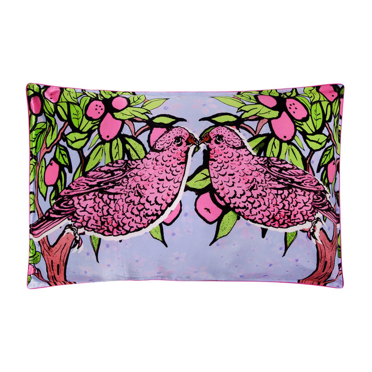 Perfect your beauty sleep with this pillowcase from Jessica Russell Flint. Crafted from 100% silk, this luxuriously soft pillowcase is adorned with two charming mocking birds. Key features: * Material: 100% silk * Dimensions: 50x75cm * Adorned with two kissing mocking birds * In pink, lilac, and green shades * Piped edging * Hand wash only * With cold water
