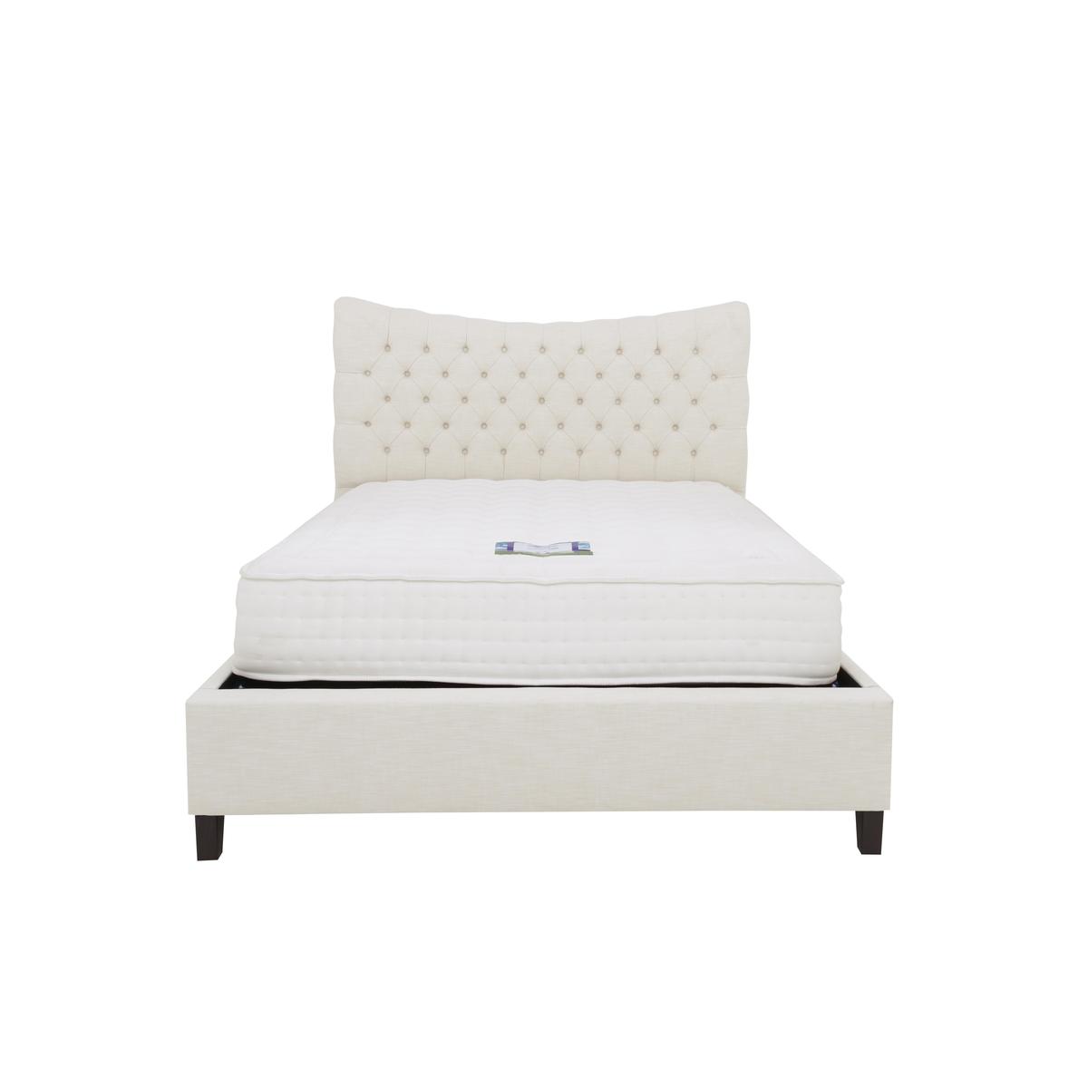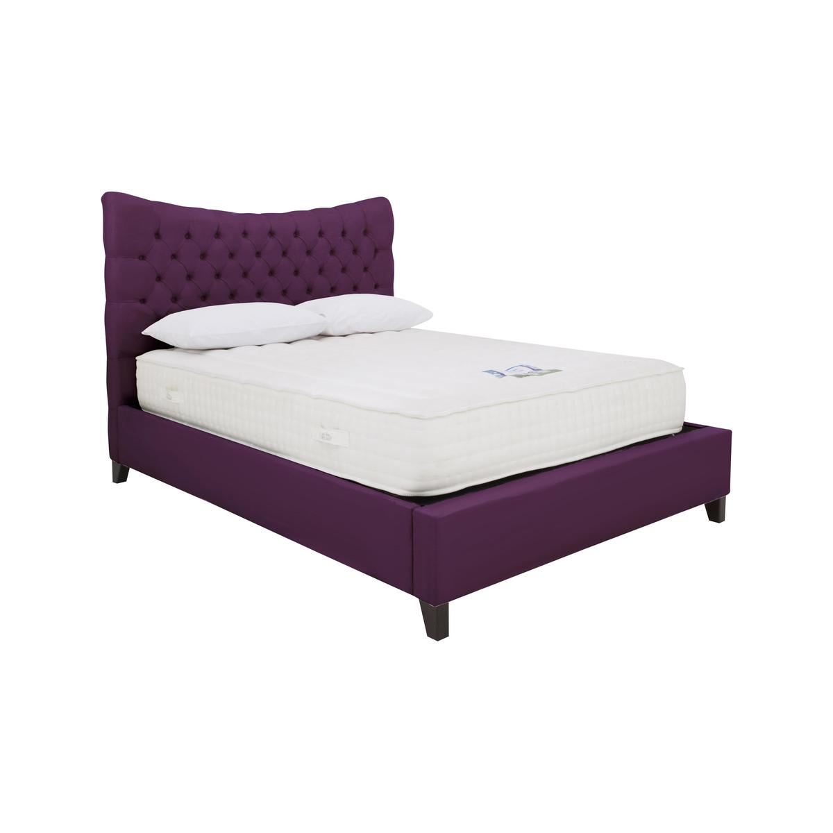 Headboard comes as one single piece. The contemporary Jessie bedframe combines modern lines with traditional upholstery techniques. The result is perfection. With its curved silhouette and lavishly pleated and buttoned upholstered headboard, this gorgeous bedframe stylishly surrounds the mattress, adding extra width for a luxurious and contemporary look. And it’s so beautifully made. Both the frame and the upholstery are hand crafted, and it shows in the details. Choose from a wide range of fabrics, including velvets and wools, in an equally wide selection of colours both subtle and bright. The hand-made frame’s sprung slatted base supports any style of mattress, including pocket sprung and memory foam, and is available in double, king and super king sizes. The British-made Jessie bedframe is part of the Jessie range which also includes an ottoman bedframe which incorporate useful concealed storage. Mattress available separately